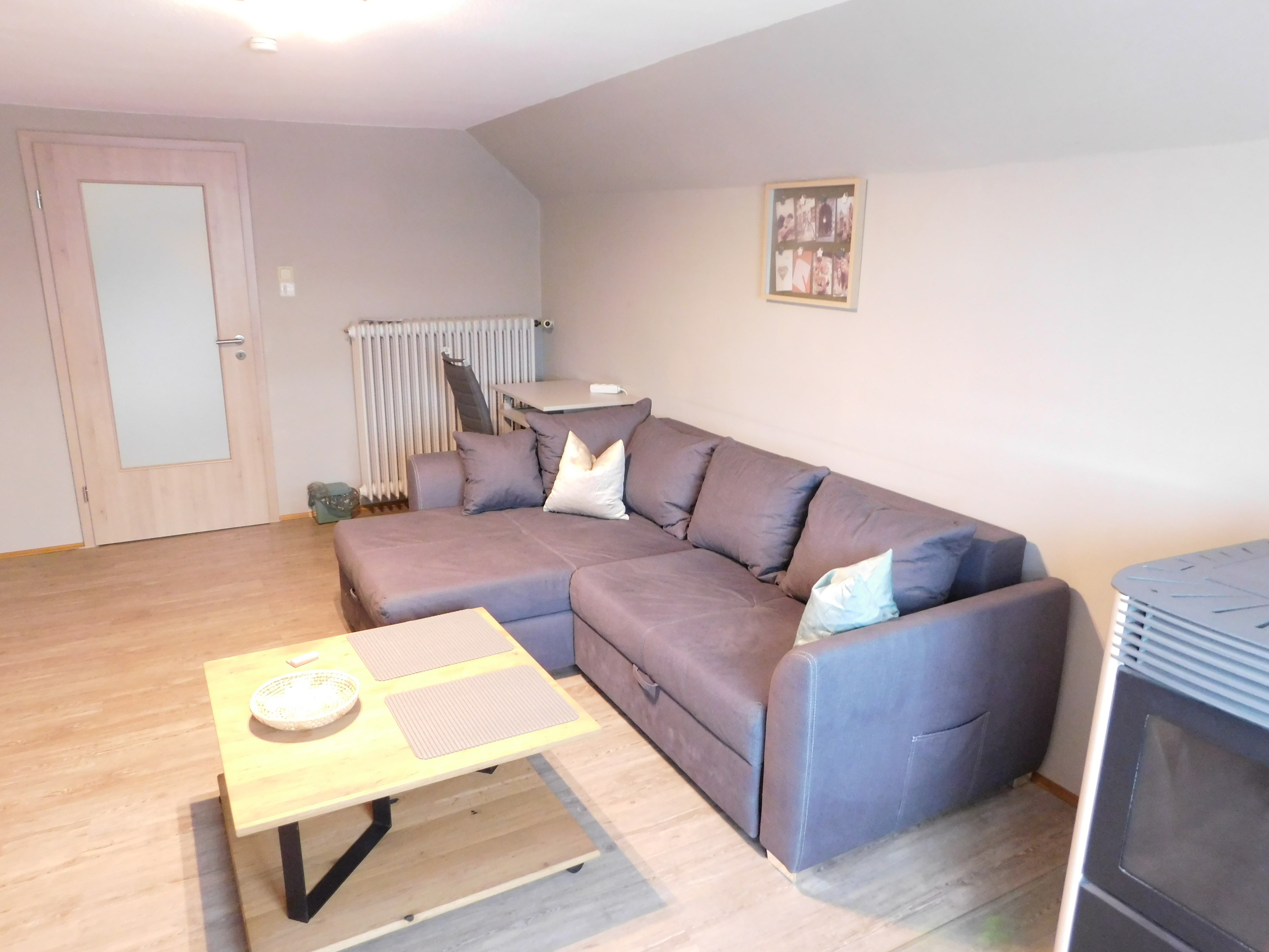 Die 89m² große Ferienwohnung bietet 1 Schlafzimmer mit Doppelbett und zusätzlichem Schlafsofa, 1 Kinderzimmer mit Einzelbett, Küche mit kleiner Speisekammer. Das neu gestaltete Badezimmer ist mit Wanne/WC ausgestattet. Im Wohnzimmer sorgt ein Pelletofen für gemütliche Wärme und bietet außerdem ein bequemes Schlafsofa. Fernsehgeräte im Einzelzimmer und Wohnzimmer sowie WLAN vorhanden. Eine Waschmaschine sowie Wäschetrockner finden Sie in der Wohnung ebenfalls vor. Im Hof vor dem Haus befindet sich eine Sitzgruppe für die Ferienwohnung.
