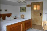 Liebevoll im bayerischen Stil eingerichtet, bietet Ihnen die Wohnung im Wohnraum zusätzlich eine Kippcouch für ein Kind sowie eine komplett ausgestattete offene Küche sowie ein separates Schlafzimmer mit zwei zusammenstehenden Betten mit je 1m x 1,9m.