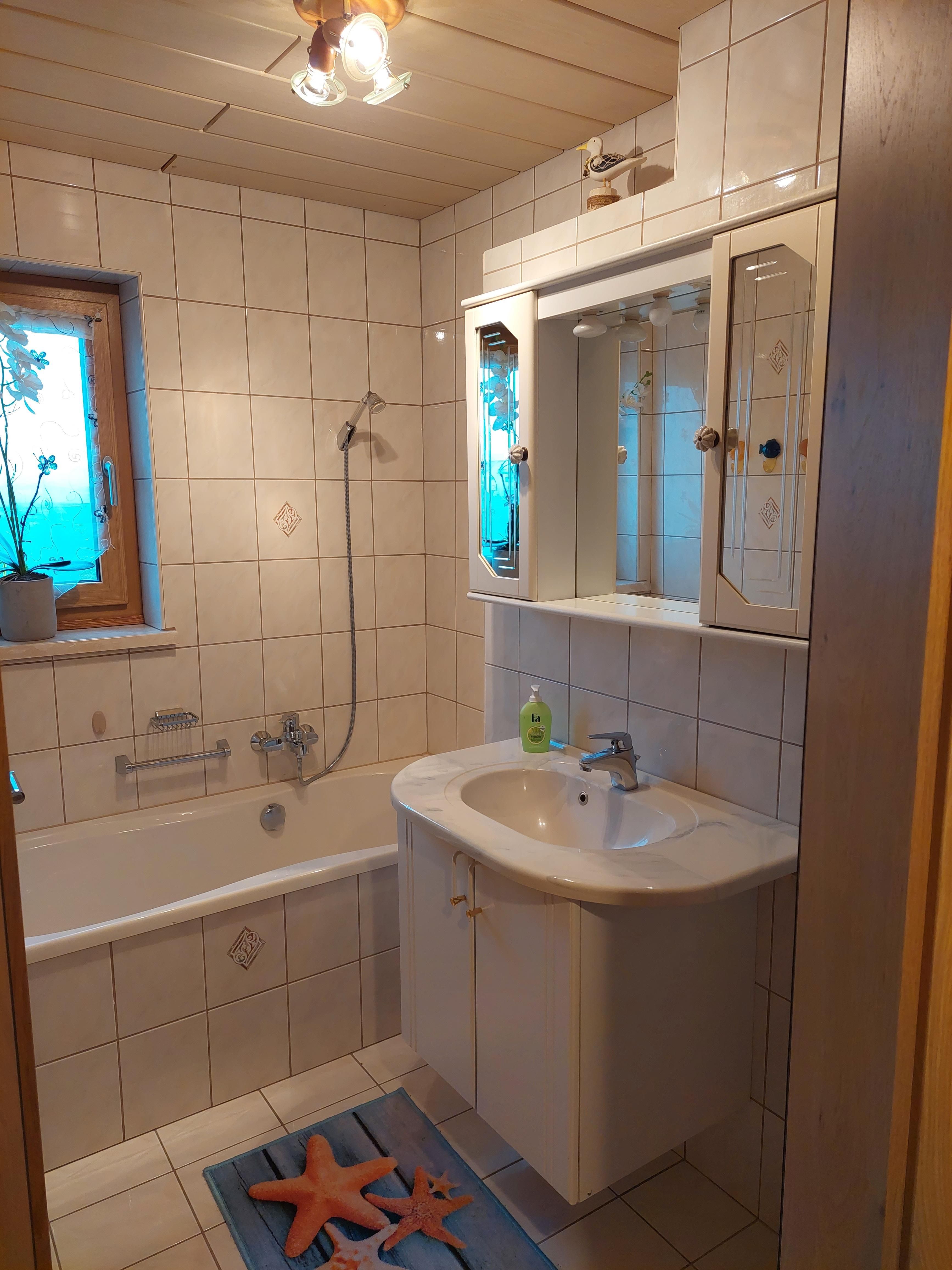 Die Ferienwohnung mit ca. 65 m² liegt im 2. Stock unseres Hauses, ist komplett möbliert und verfügt über ein Doppelzimmer, eine separate komplett ausgestattete Küche mit Essecke, ein schönes Bad mit Du/Wc, sowie ein Wohnzimmer mit LCD-TV, ausziehbarer Schlafcouch und Zusatzbett.