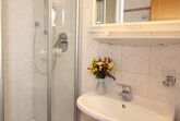 Die komplett renovierte Ferienwohnung Elisabeth hat 45 qm, bietet Platz für 1 bis 2 Personen und besteht aus einem Wohnraum mit Küche und Essecke, einem separaten Schlafzimmer und Dusche mit WC. WLAN ist natürlich kostenfrei verfügbar.