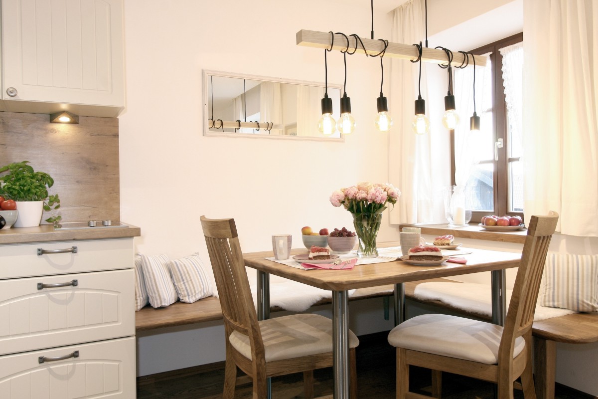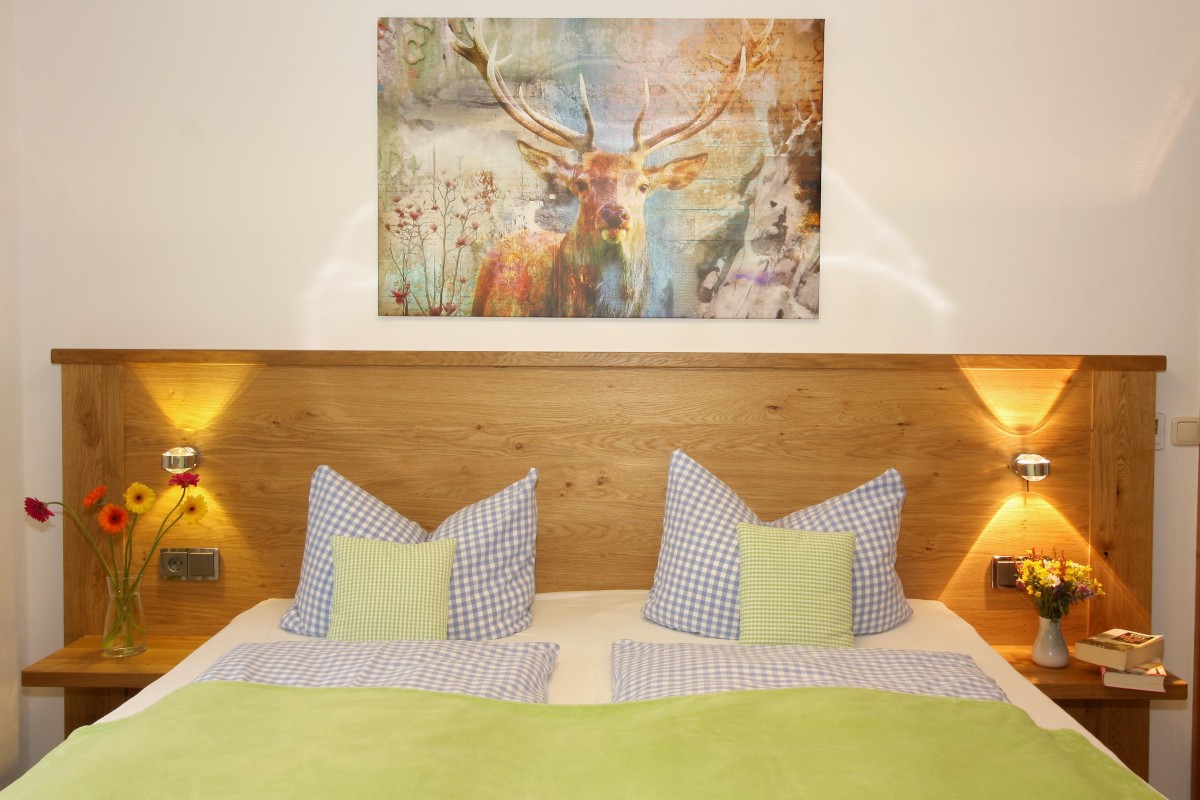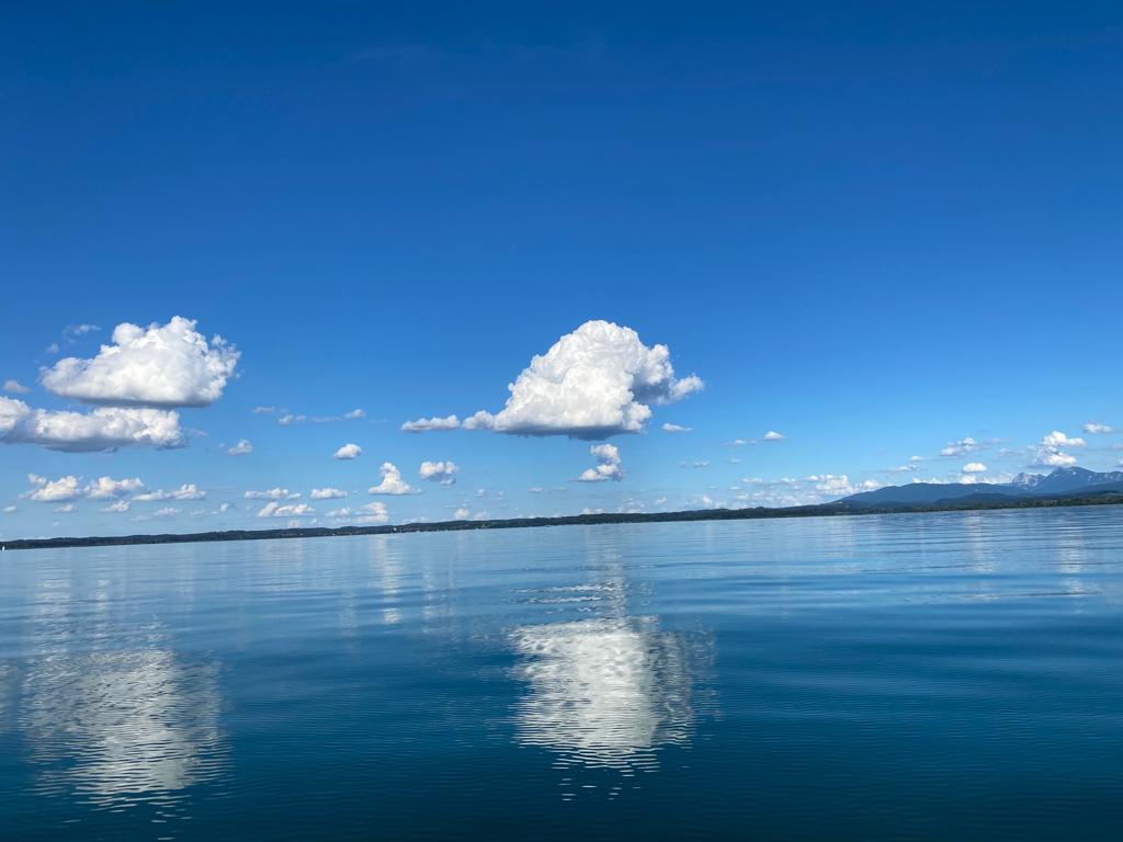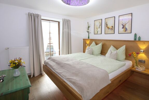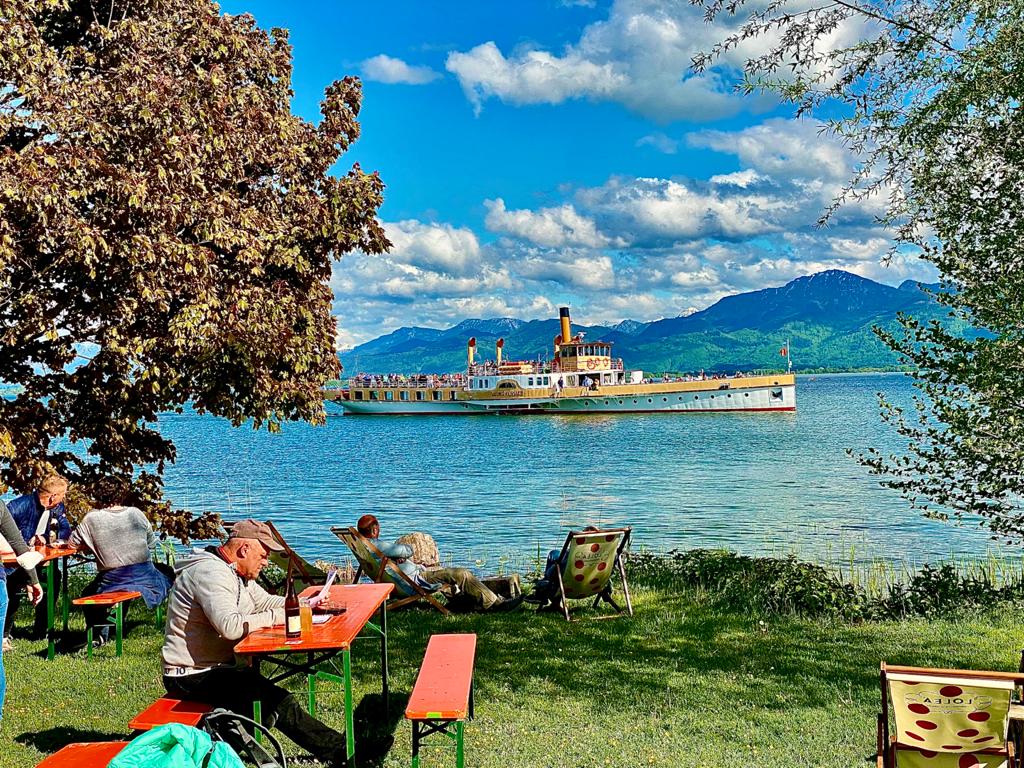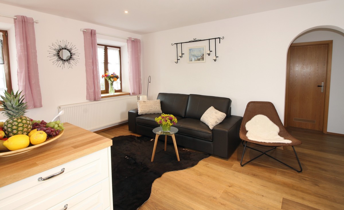 Die geräumige Ferienwohnung im 1. OG ist im gemütlichen Landhausstil hochwertig eingerichtet und hat einen eigenen Zugang zum Balkon mit herrlichem Blick auf Ufer, See und Berge.