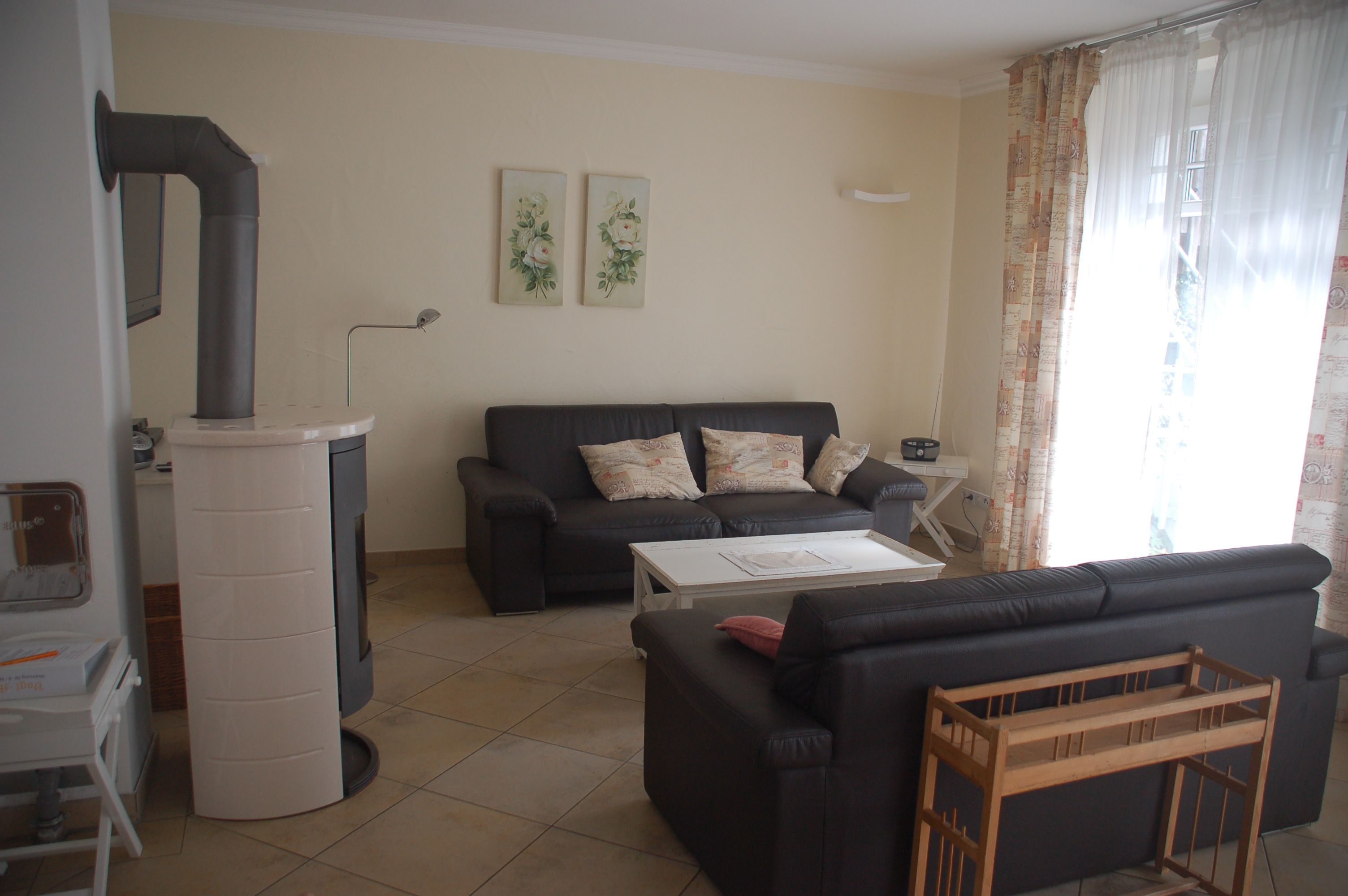 4 Schlafzimmer, großer Wohn-/Essbereich mit komplett ausgestatteter Küche, großem Esstisch, Kaminofen und gemütlicher Wohnlandschaft, ein Bad mit Wanne/Dusche/WC, ein weiteres Bad mit Dusche/WC, Windfang mit Garderobe, Sonnenterrasse, Kfz-Stellplätze