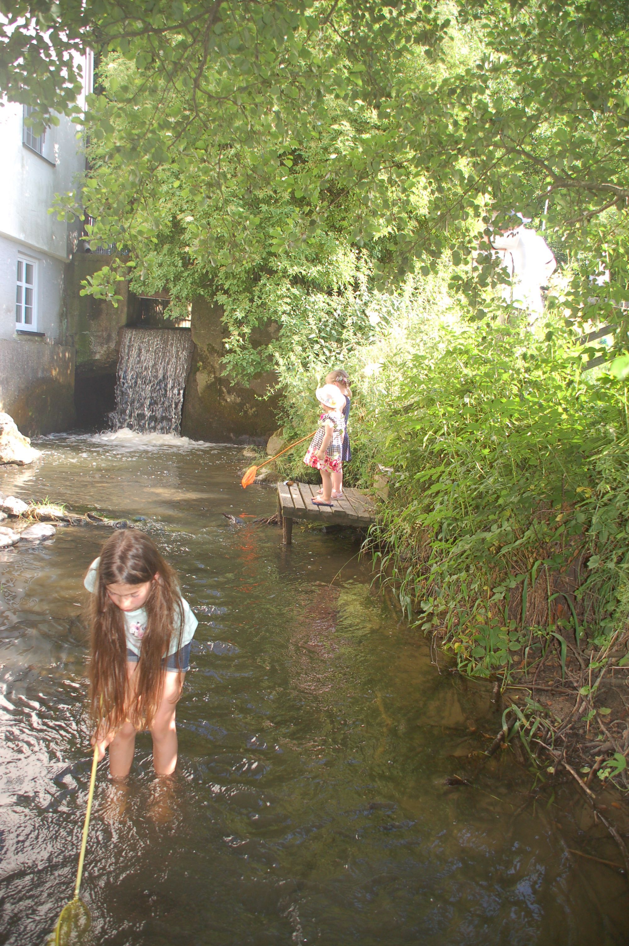 Auf unserem Gelände gibt es viel zu entdecken. Spielplätze zum Springen, Klettern und Schaukeln, die Geisterhöhle, Wasserspielplatz sowie den Bach direkt am Gelände, der an heißen Tagen Abkühlung bietet.