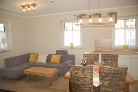 Küche mit Essplatz, Wohnzimmer,