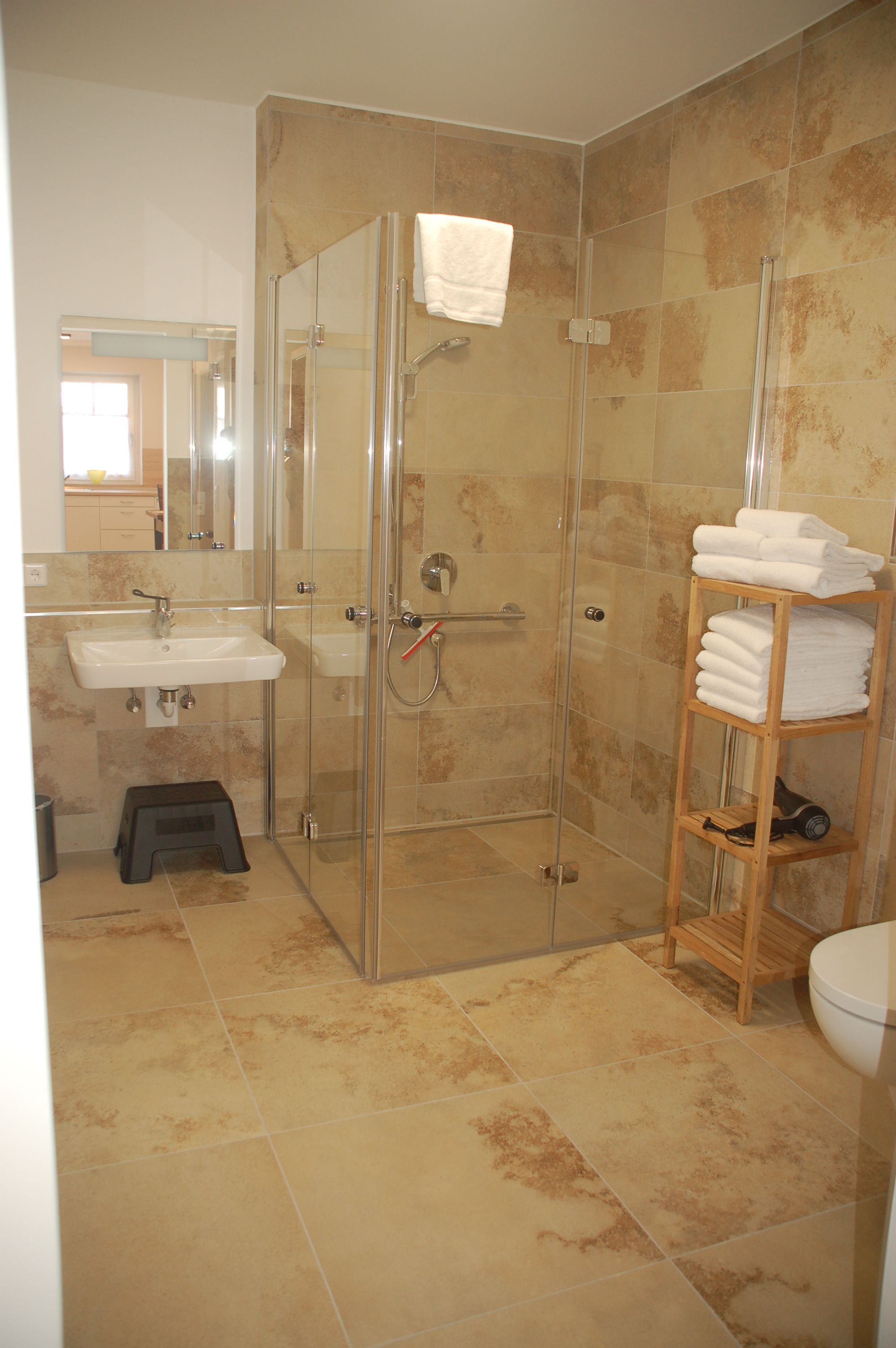 Die barrierefrei gestaltete Erdgeschosswohnung ist rollstuhlgeeignet. Der zugeordnete Stellplatz liegt direkt neben dem Wohnungseingang.