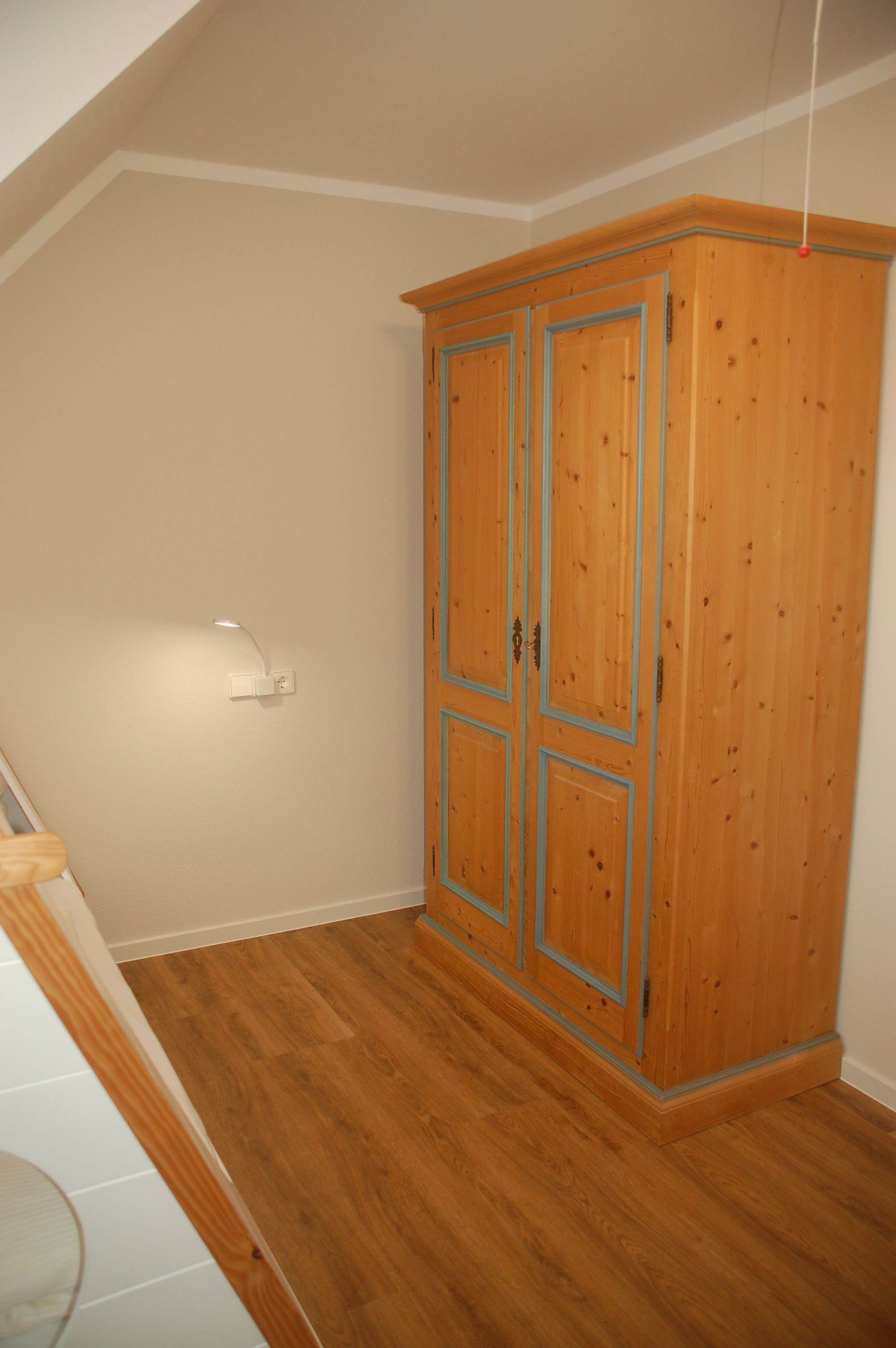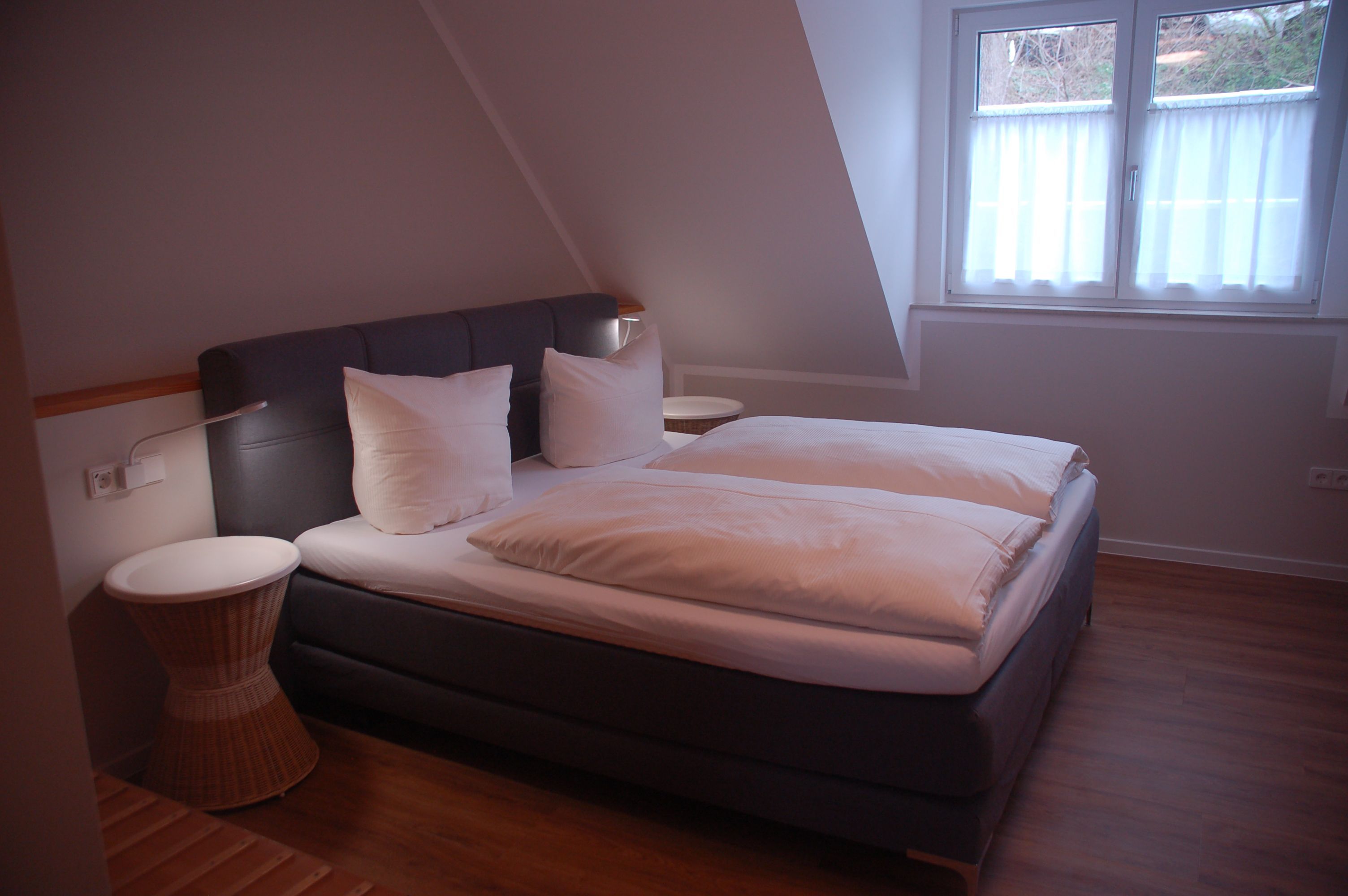Die Mühlen-Maisonette Wohnung 3 kann über eine Verbindungstür mit der Mühlen-Maisonette Wohnung 4 verbunden werden. Im Elternschlafzimmer erwartet unsere Gäste eine 180 cm breites Boxspringbett sowie ein 140 cm langes Kinder-Gitterbett.
