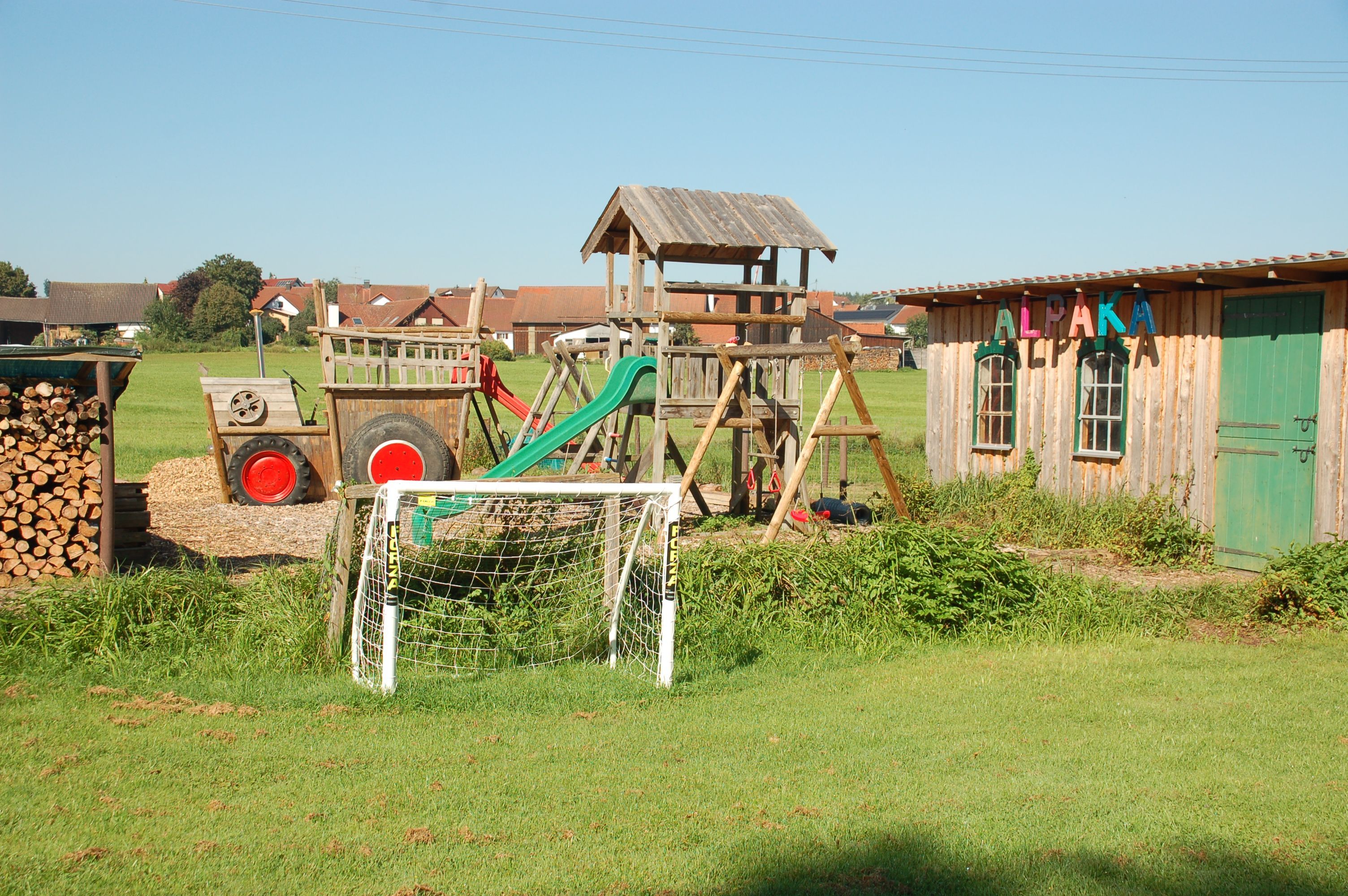 Nebenan, auf der großen Weide, befinden sich die Tiergehege, ein kleines Fußballfeld, ein Lagerfeuerplatz und ein Sandspielbereich.