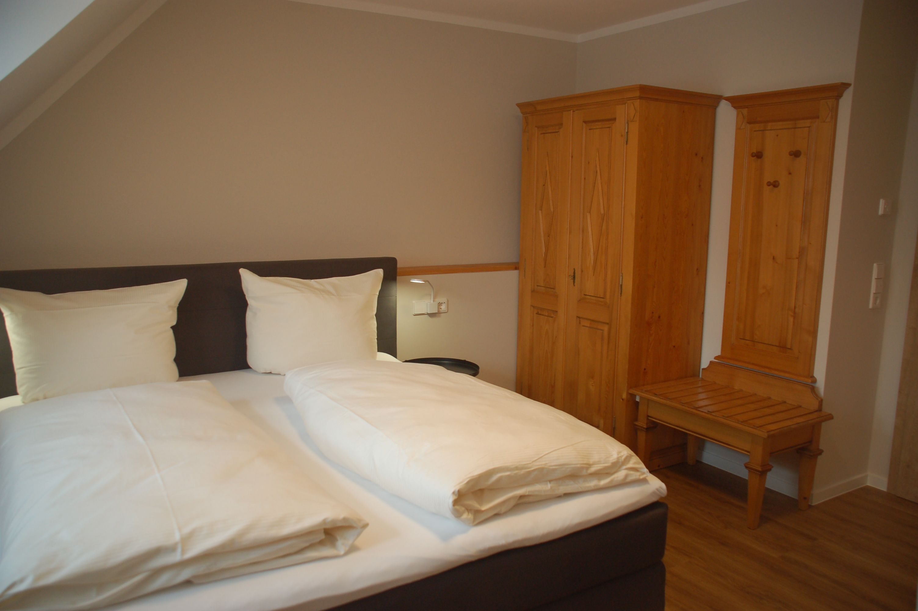 Die Mühlen-Maisonette Wohnung 4 kann über eine Verbindungstür mit der Mühlen-Maisonette Wohnung 3 verbunden werden. Im Elternschlafzimmer erwartet unsere Gäste eine 180 cm breites Boxspringbett sowie ein 140 cm langes Kinder-Gitterbett.