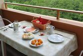 Im Inneren erwartet Sie eine voll ausgestattete Einbauküche mit Geschirrspüler, Mikrowelle, Herd, Kühlschrank samt Gefrierfach, Kaffeemaschine und Wasserkocher – alles, was Sie für die Selbstversorgung benötigen. Das Wohnzimmer bietet einen Kabel-Flachbild-TV und direkten Zugang zum Südwestbalkon, von wo aus Sie über das Naturschutzgebiet hinweg Seeblick genießen können. Keine Gebäude stören Ihren Blick zum See.