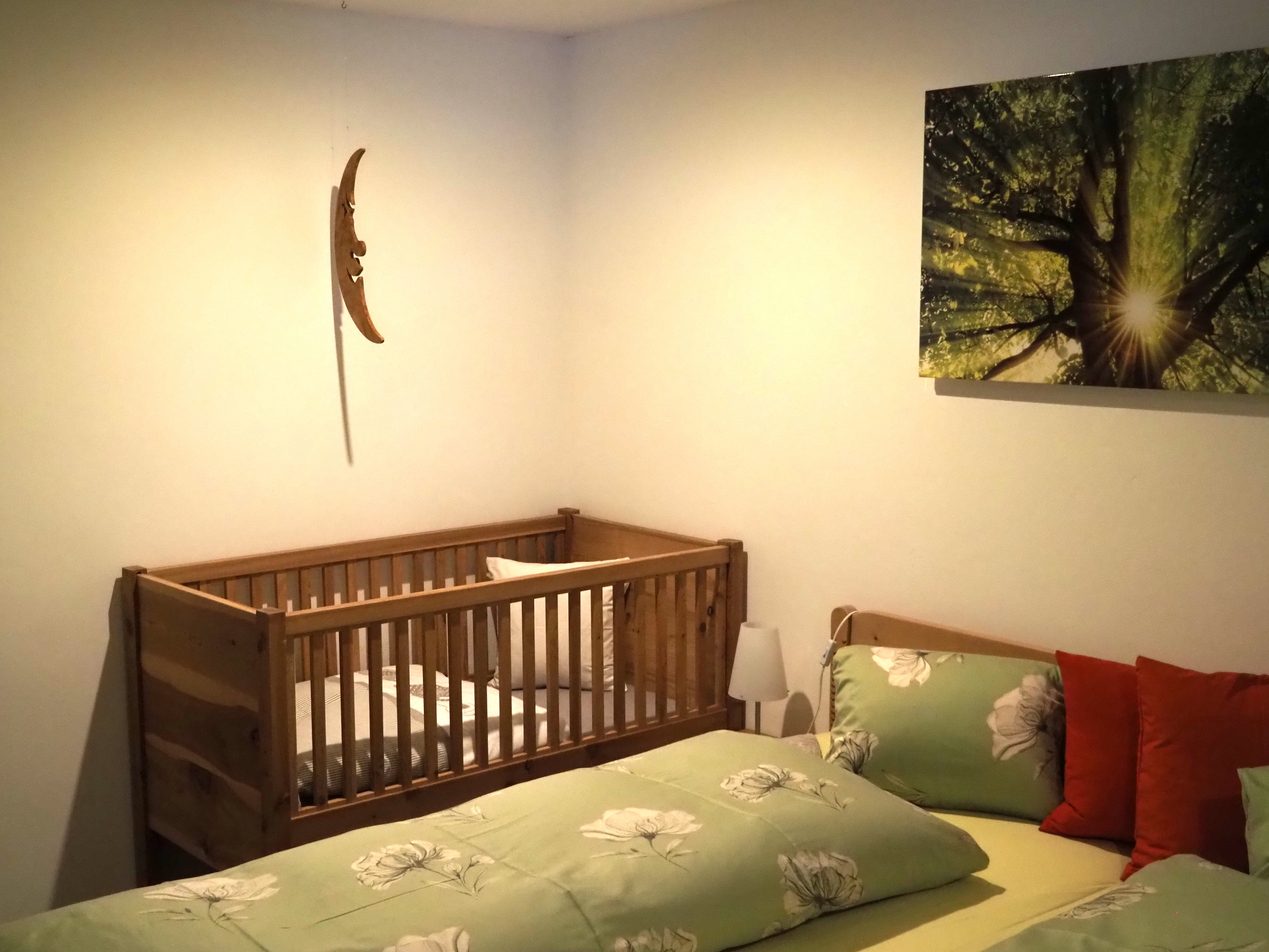 1 Schlafraum, Babybett, Babyhochstuhl, Backofen, Balkon, Fondue-Set, Frühstück in der Ferienwohnung erhältlich, Garten, Geschirrspüler, Grillmöglichkeit, Haustiere nicht erlaubt, Internetverbindung, Kaffeemaschine, Kinderbett, Küche, Küchenwäsche, Kühlschrank, Nichtraucherzimmer-/wohnung, Parking, Raclette-Set, Radio, Terrasse, Tisch- und Küchenwäsche, Töpfe Pfannen Geschirr, TV, Wäschetrockner, Wäschetrockner im Haus: auf Verlangen, Waschmaschine, Waschmaschine im Haus: auf Verlangen, Wasserkocher, WiFi, Zimmer mit Verbindungstür
