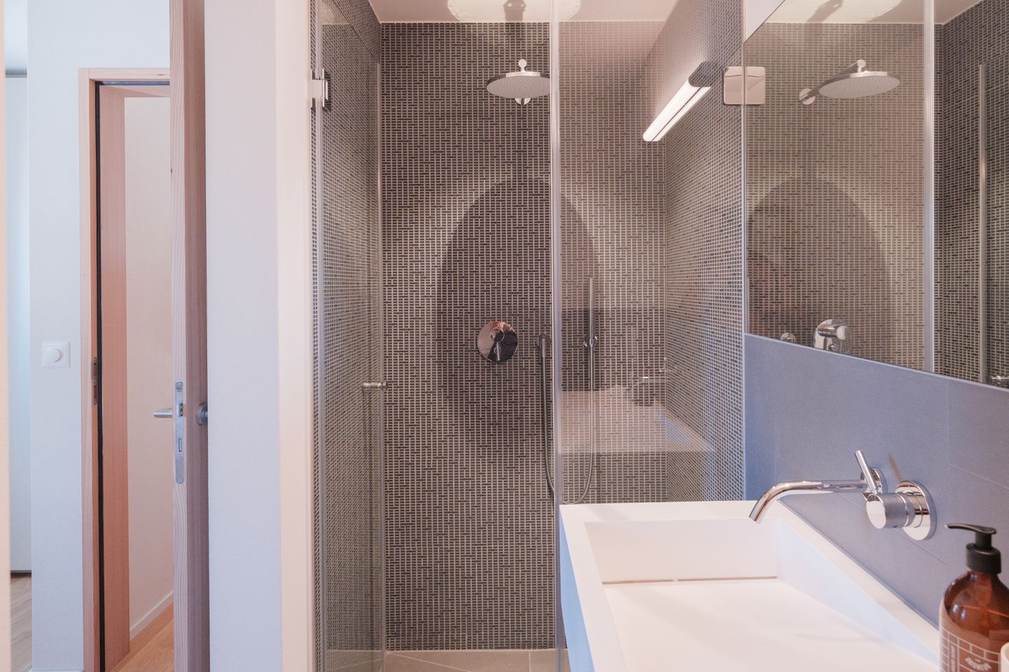 Neue, moderne 2 1/2 Zimmer Wohnung in der 2.Etage gelegen, einem Schlafzimmer mit einem Doppelbett, einem Wohnzimmer mit einer Schlafecke auf einem Podest für 2 Personen, einem Esstisch, ein Sofa und einer offenen Küche mit Induktionsherd, Geschirrspülmaschine und Backofen mit Steamer, zwei separate Dusche/ WC und einem gedeckten Balkon Richtung Süden. Ohne TV und Musikanlage.