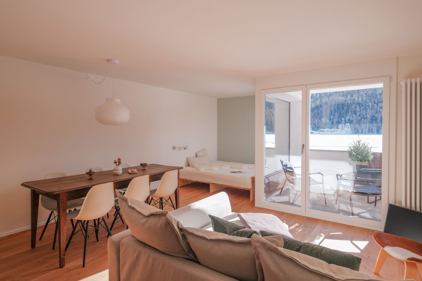 Die Residenza Lagrev liegt an einer ausgesprochen sonnigen und ruhigen Lage auf der malerischen Ebene zwischen dem Silser- und Silvaplaner See im wunderschönen Oberengadin. Das Dorfzentrum von Sils Maria, die Bergbahn Furtschellas-Corvatsch sowie das Silser Wassersportzentrum sind nur wenige Gehminuten entfernt. Die Langlaufloipe des Engadin Skimarathon führt direkr an unserem Haus vorbei.