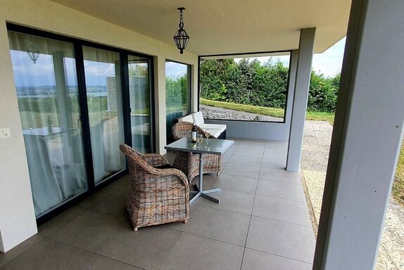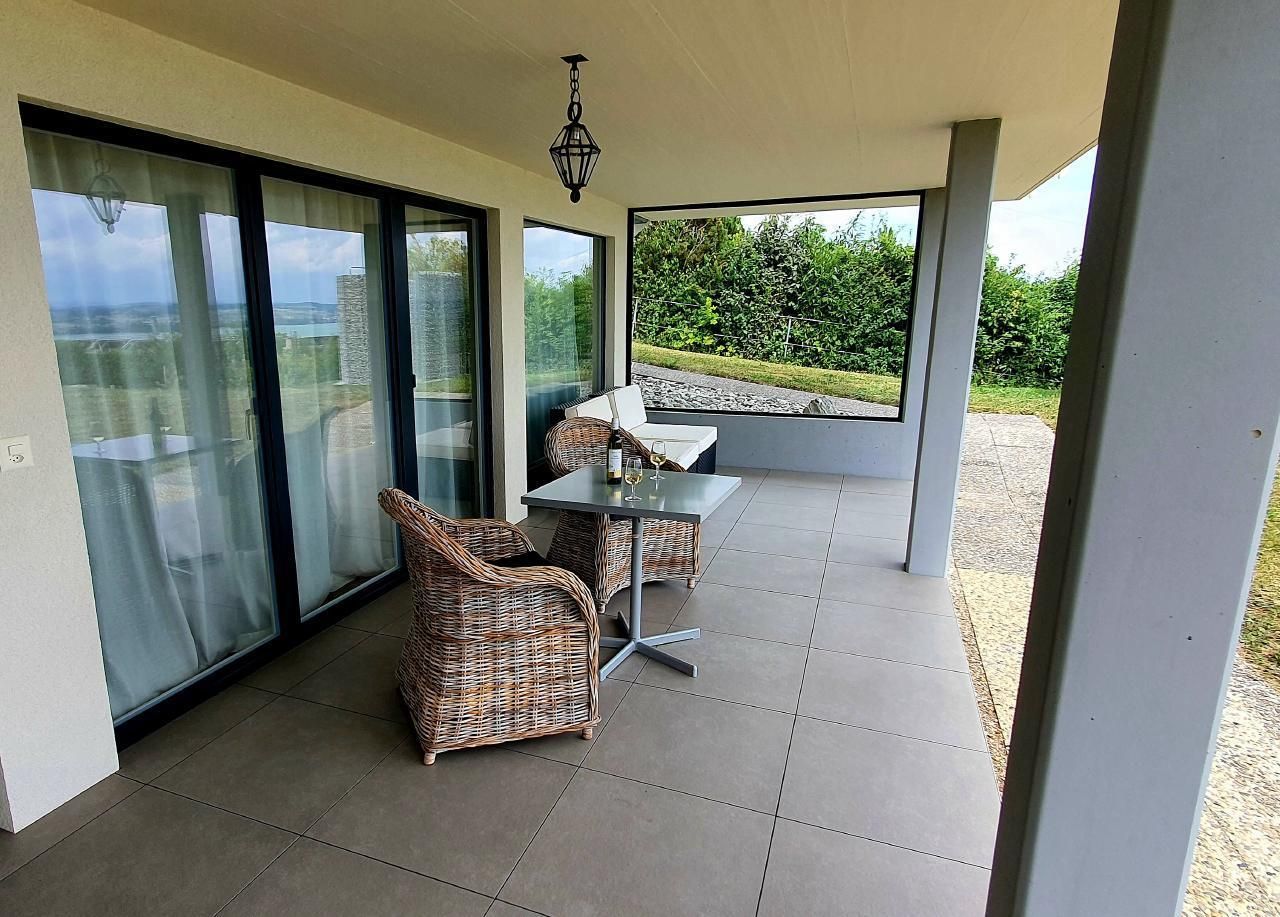 Mitten in den Weinbergen des Mont Vully und 15 min. von Murten oder Avenches entfernt, befindet sich die Ferienwohnung «Riposo» (Impasse des Cerisiers) im Erdgeschoss eines gepflegten Einfamilienhauses mit Sicht auf den Murtensee, die Alpen und die Broyeebene. Ruhe pur!