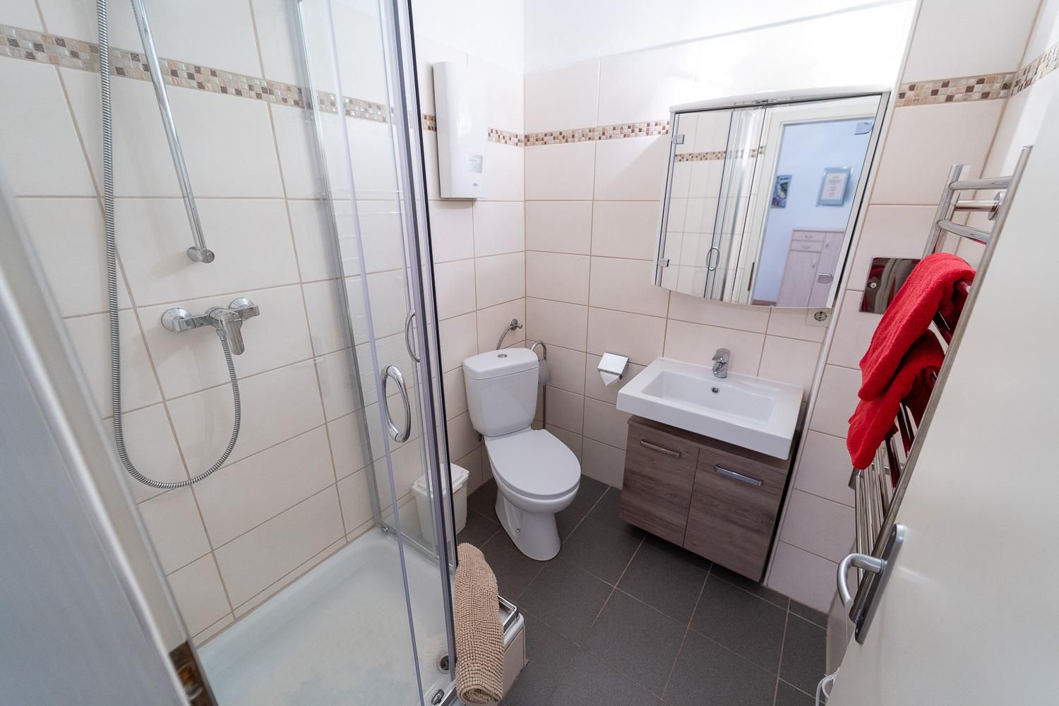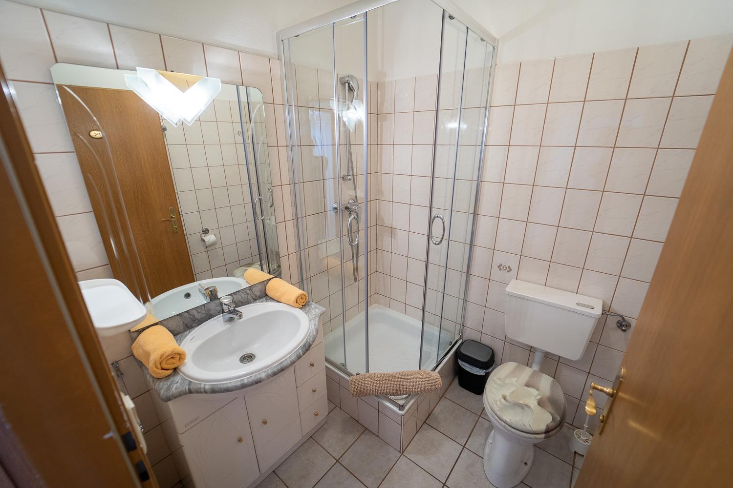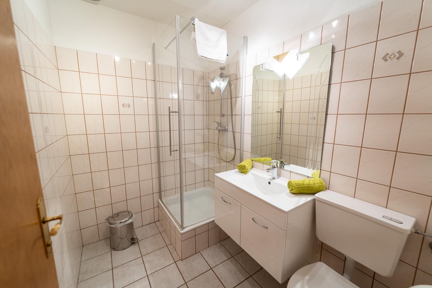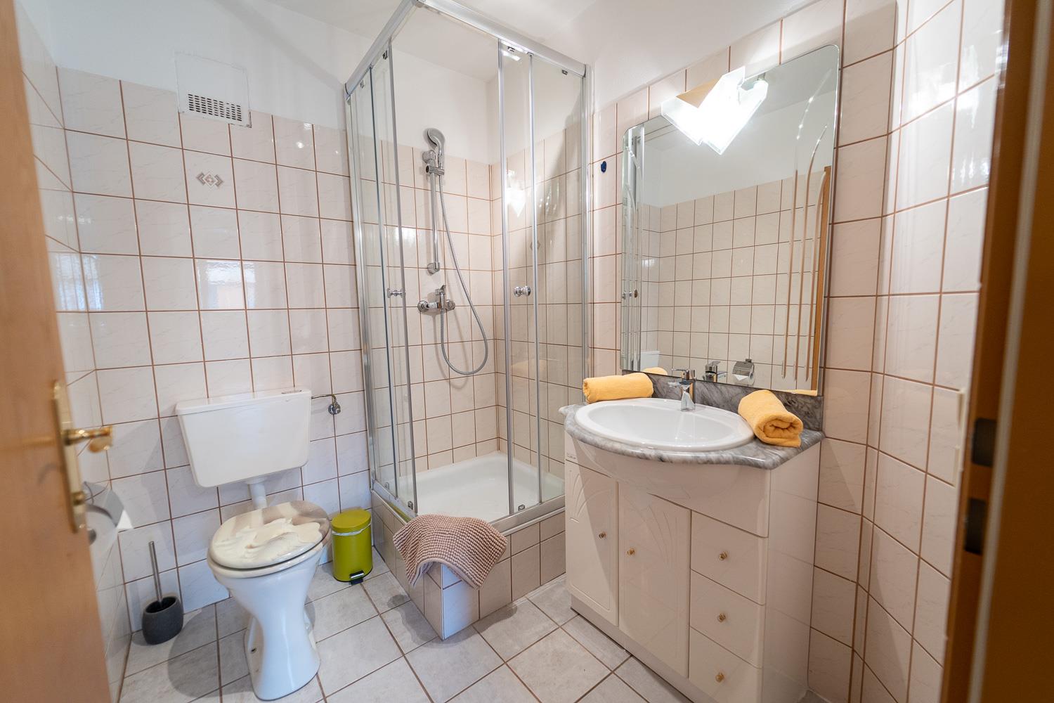 . Vorraum, Schlafzimmer, Wohnküche, Bad mit Dusche (bzw. 1x Badewanne) und WC
