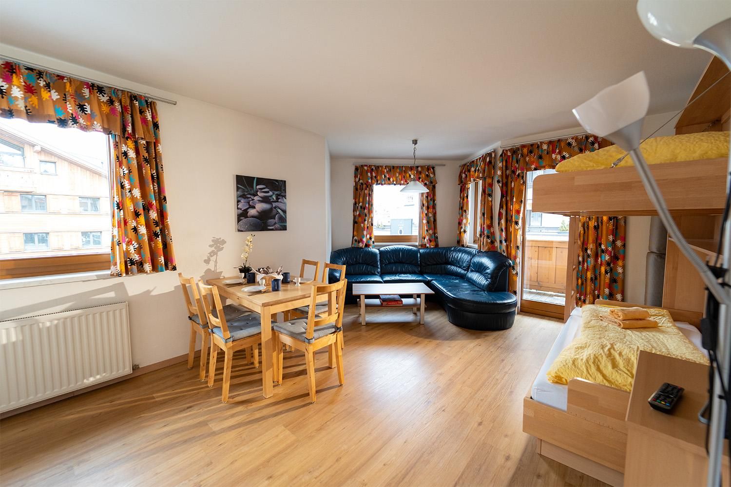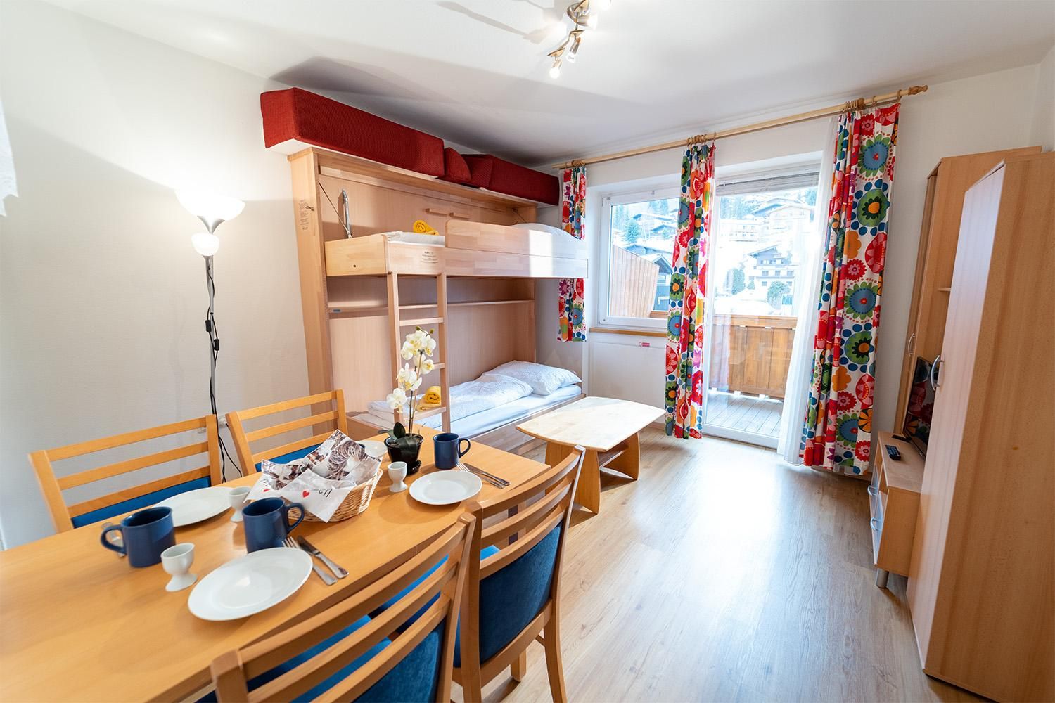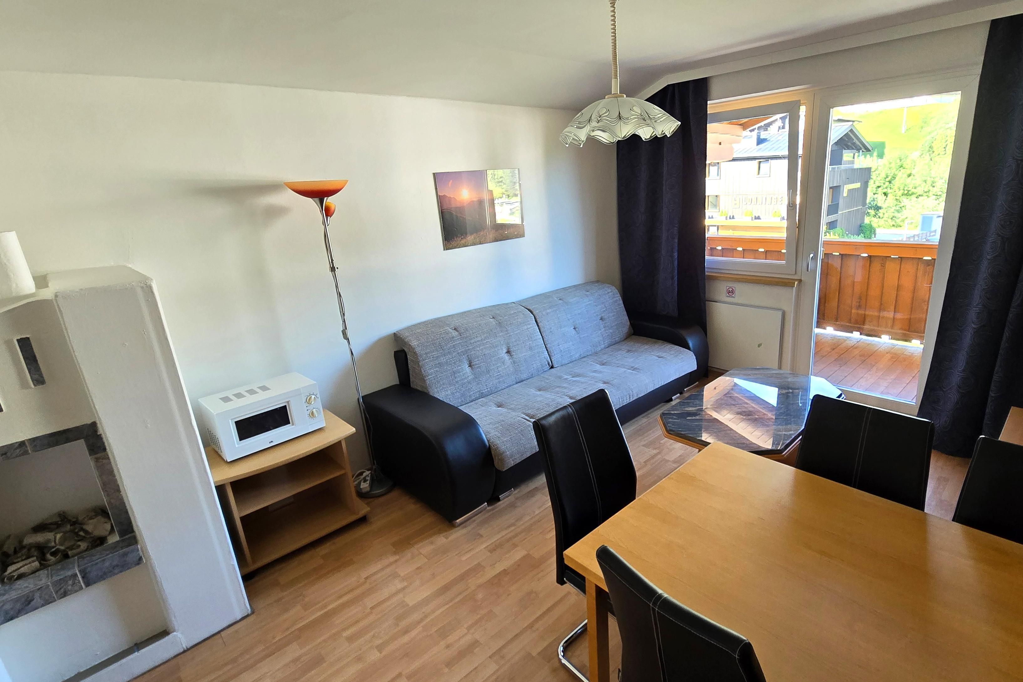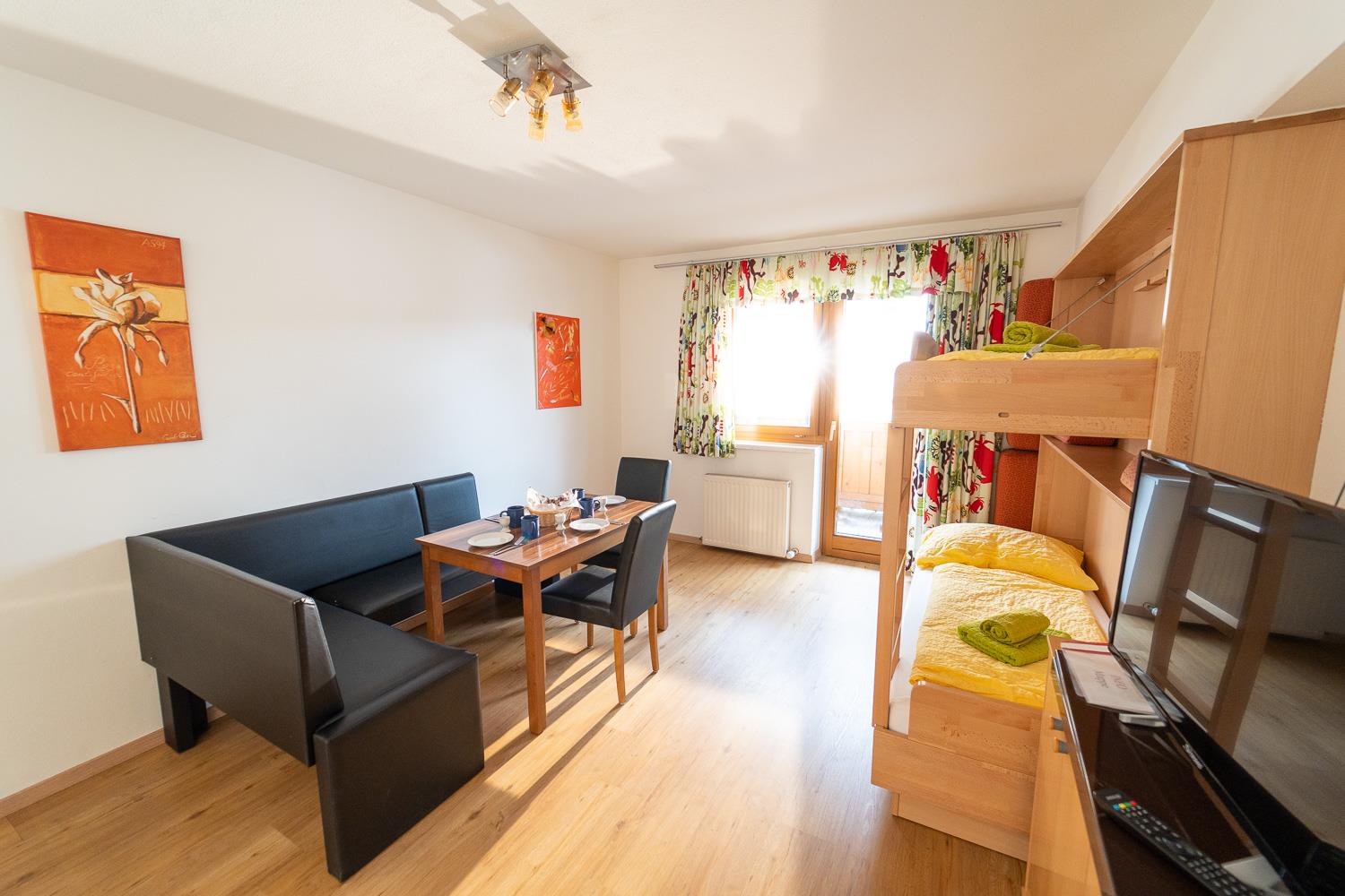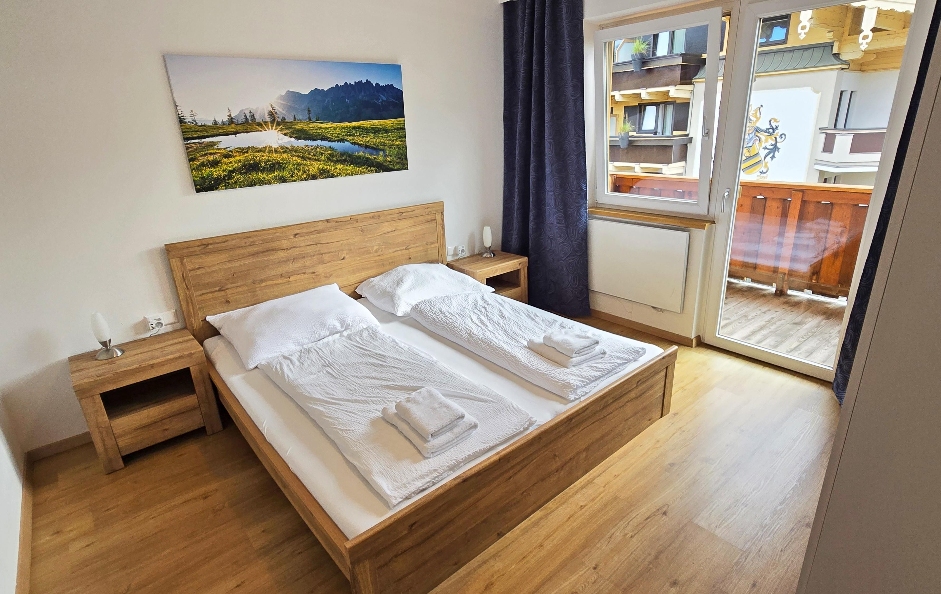 . alle Komfort Apartments verfügen über einen Balkon entweder zur sonnigen süd-west Seite oder zur ruhigen Dorfseite mit Bergpanorama'