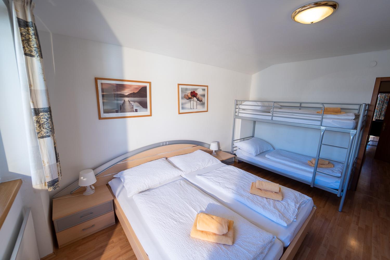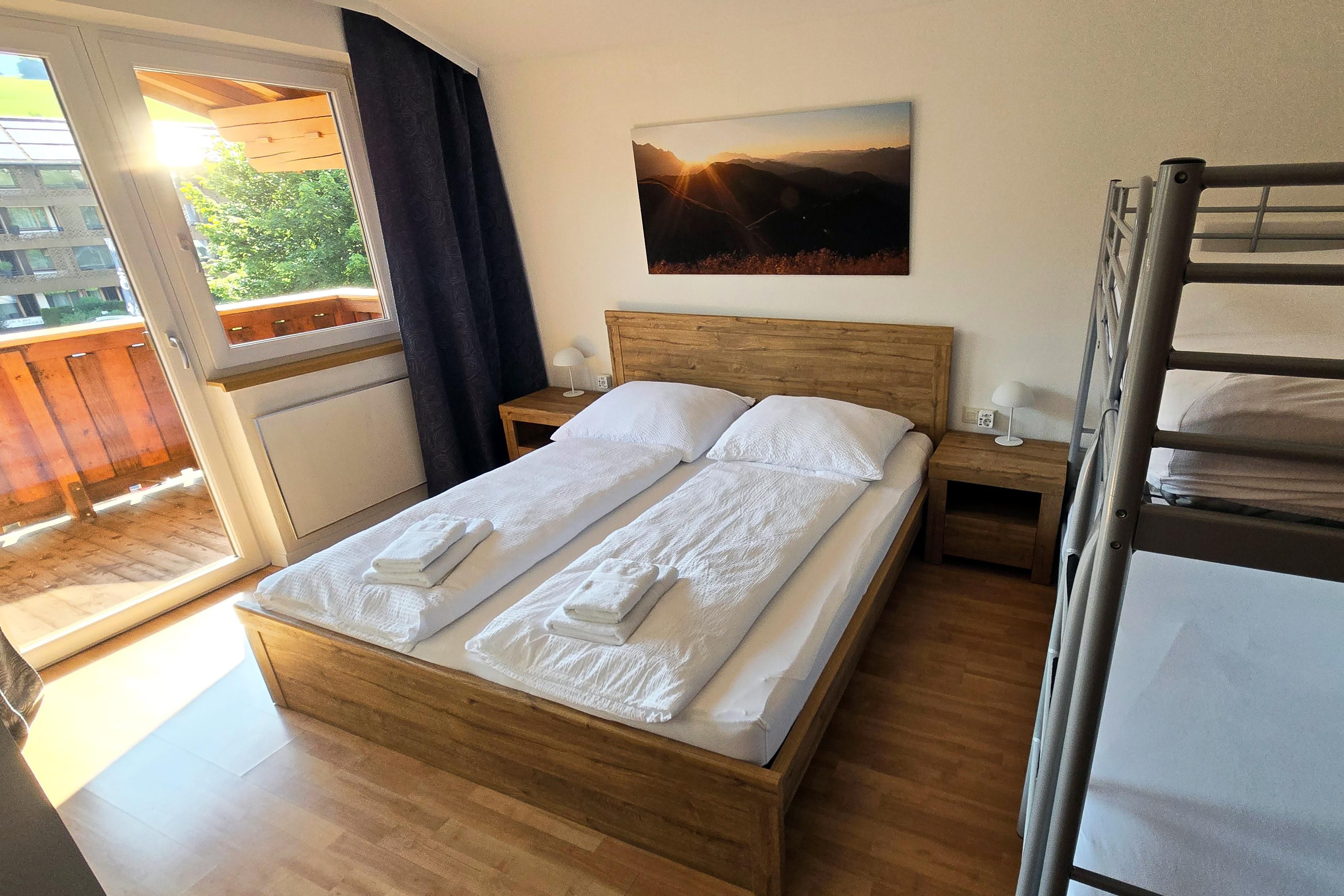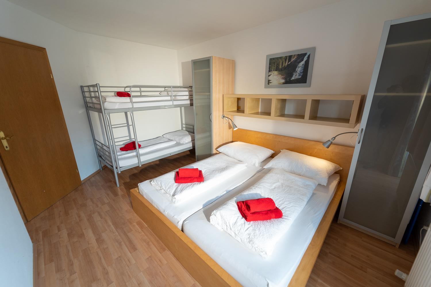 . Schlafzimmer mit Doppelbett (6er Apartments zusätzlich mit Stockbett)