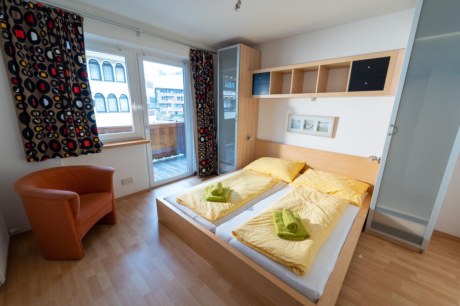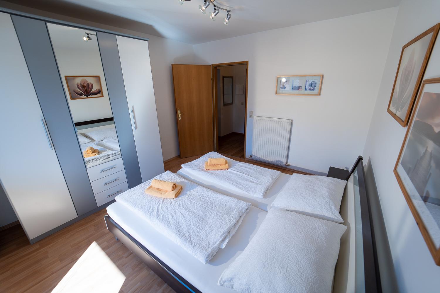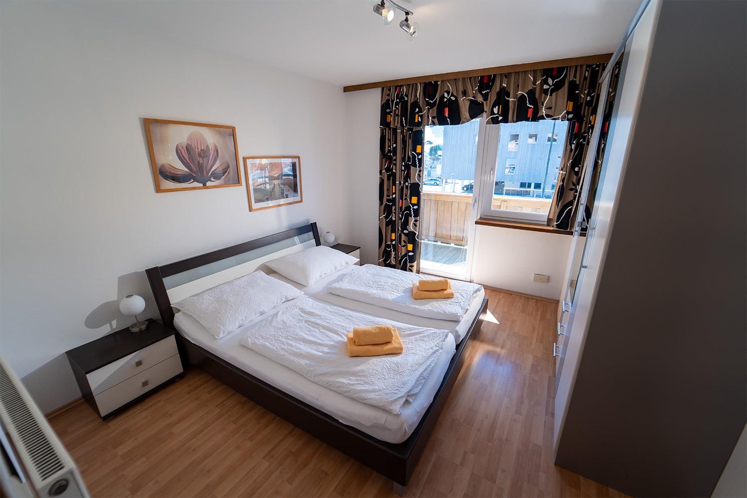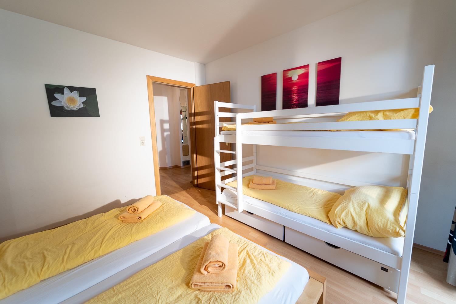 . Schlafzimmer mit Doppelbett (6er Apartments zusätzlich mit Stockbett)