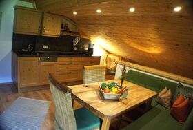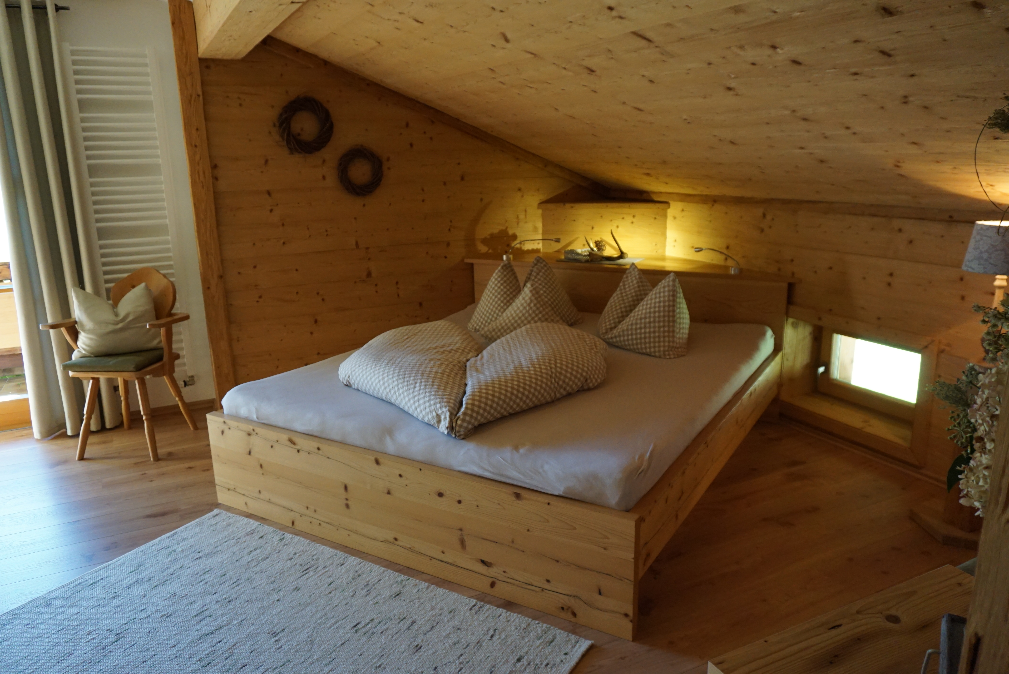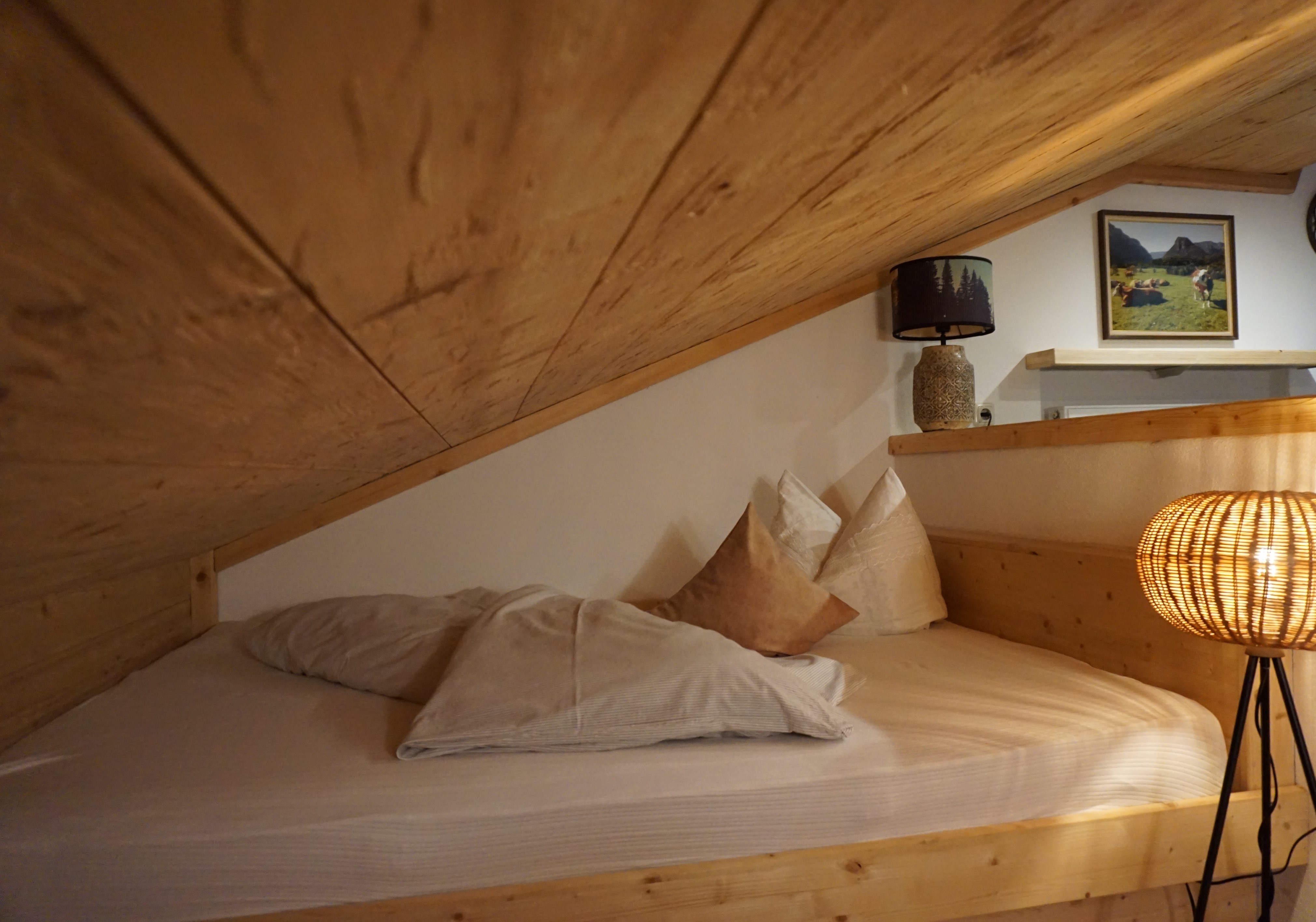 • im Wohnbereich befindet sich als weitere Schlafmöglichkeit ein großes Doppelbett unter der Dachschräge