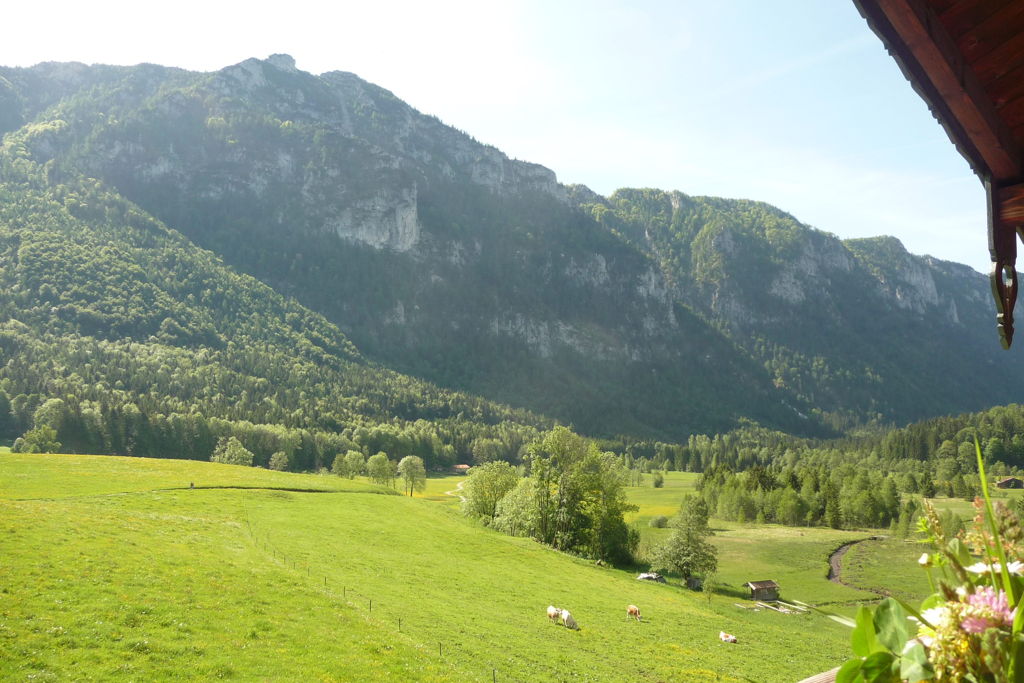 Genießen Sie die traumhafte Panorama Aussicht, aus dem Liegestuhl vom Balkon Ihrer Ferienwohnung aus. Von weitem ganz sanft sind nur die Glocken der Kühe zu hören, die friedlich grasen.