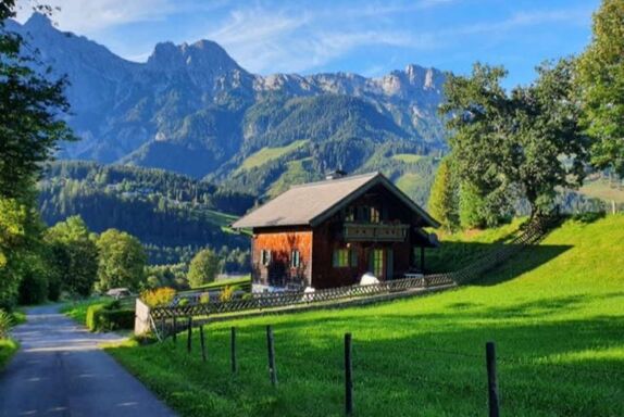 mitten im Grünland, das romantische Jagdhaus mit 360 Grad Gebirgspanoramablick.