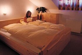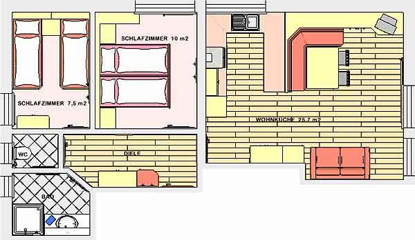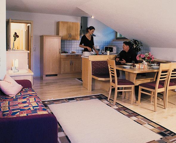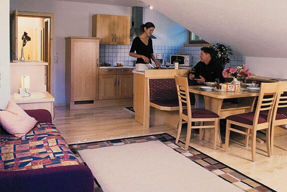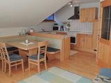 Neuwertige Dachgeschosswohnung mit 65 m², freundlich und hell - Wohnküche mit Balkon mach Süden, Sat-TV, Couch, Sitz-Essecke, 1 Doppel, ein 2 Bettzimmer