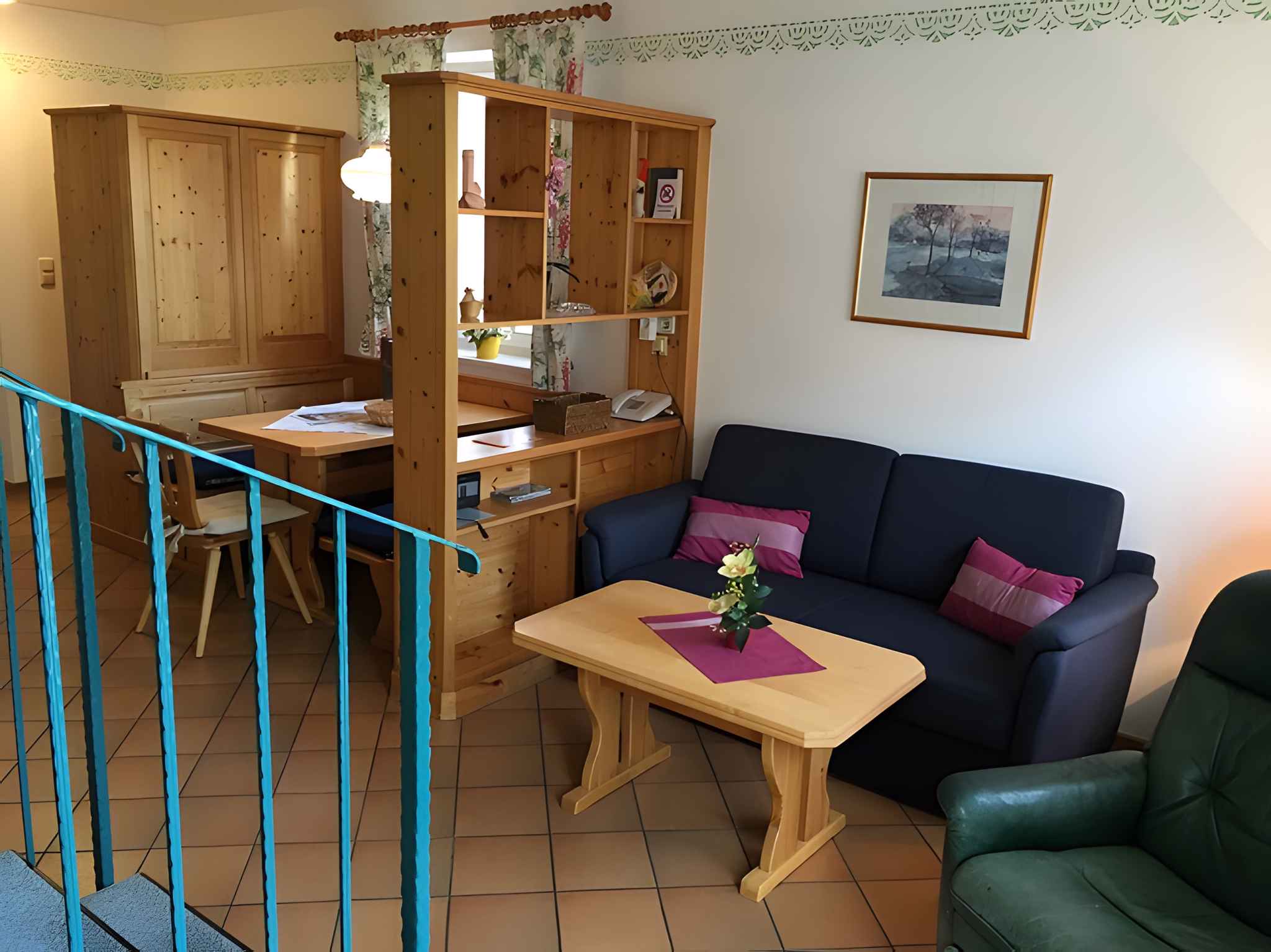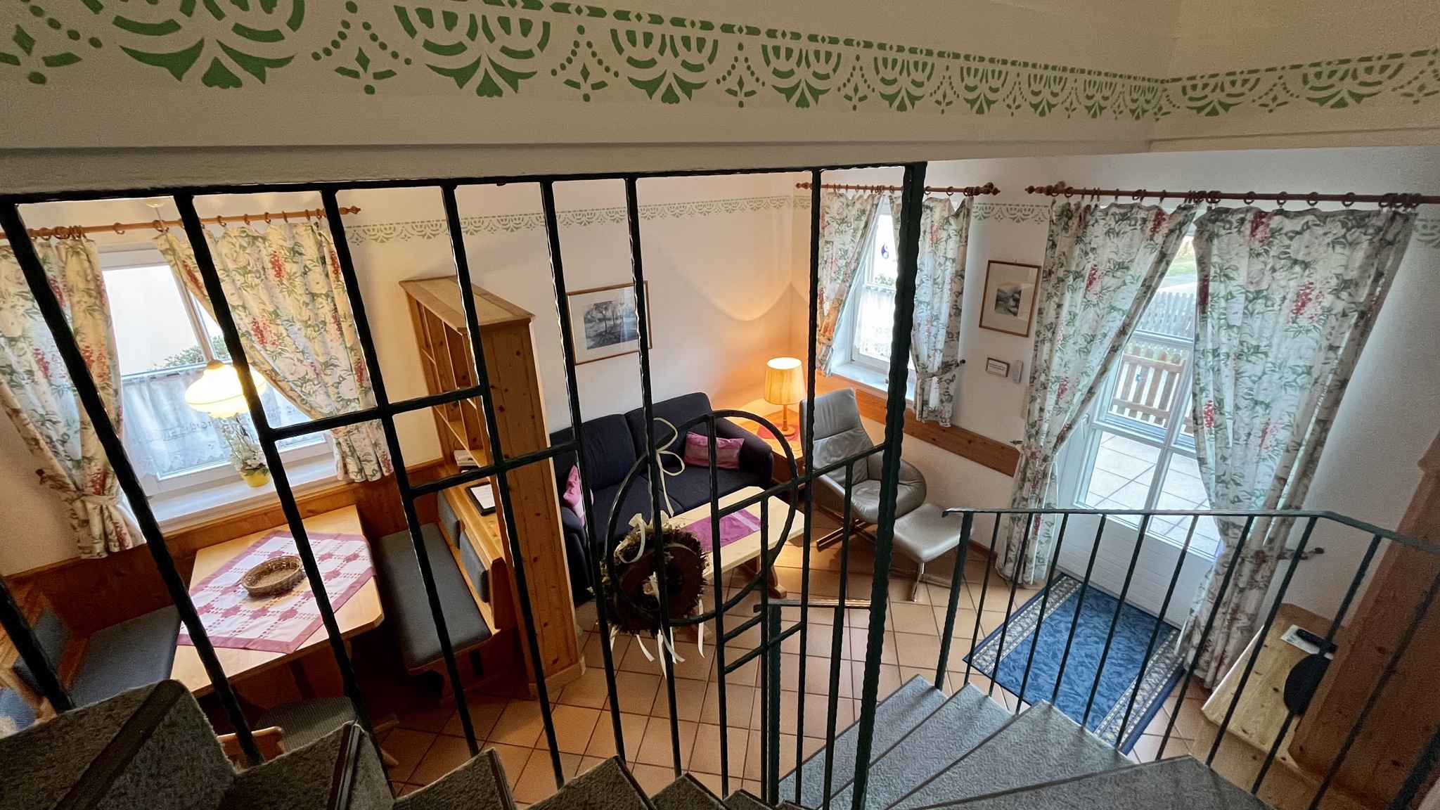 Ihre Ferienwohnung erstreckt sich über 1 Etage, 2 Zimmer (davon 1 Schlafzimmer), ist 56 qm groß und ist für maximal 4 Personen geeignet. An kälteren Tagen kann Ihre Ferienwohnung beheizt werden mit Zentralheizung und Fußbodenheizung. Fussbodenheizung im EG, Zentralheizung im OG Das Rauchen ist in Innenräumen nicht gestattet. Der Eingang ist im Erdgeschoss und überdacht und führt über 3 Stufen direkt in den Vorraum mit Garderobe, Sitzecke und Türen zu allen Räumen. Im Eingangsbereich ist ein überdachter Fahrradständer Der Eingang in Ihr Ferienhaus-Appartement befindet sich im Erdgeschoss und führt über 3 Stufen direkt in den Vorraum mit Garderobe links, und rechts ,Gäste WC+mit Waschplatz. Im Erdgeschoss sind Fliesen, im Obergeschoss ist ein Woll-Teppich verlegt, daher auch für Allergiker bestens geeignet.