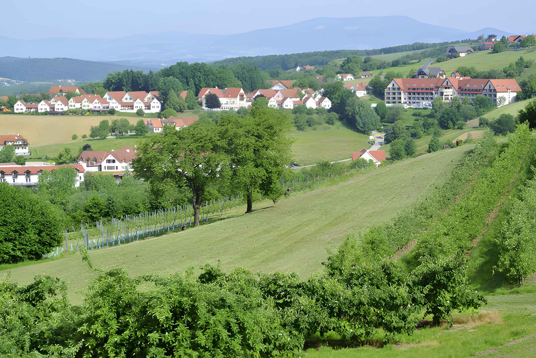Sanfte hügelige Landschaft, grüne Wiesen und Felder sind ideal für Radausflüge (Radverleih vor Ort), markierte Rad-und Wanderwege durch Weinberge und Obstgärten direkt vor der Haustüre. Zur Nutzung stehen zur Verfügung: Sonnenschirm, Sonnenliege, Terrasse und Gartenmöbel. In der Dorfanlage haben Sie die Möglichkeit folgende Inklusivleistungen kostenlos zu benützen: