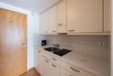 Offene Küche mit Dampfabzug, mit 2-Platten Glaskeramikherd, Kühlschrank mit Tiefgefrierfach,