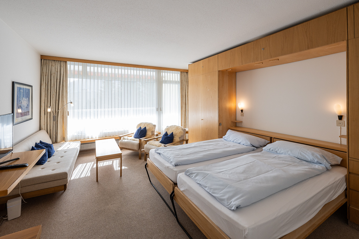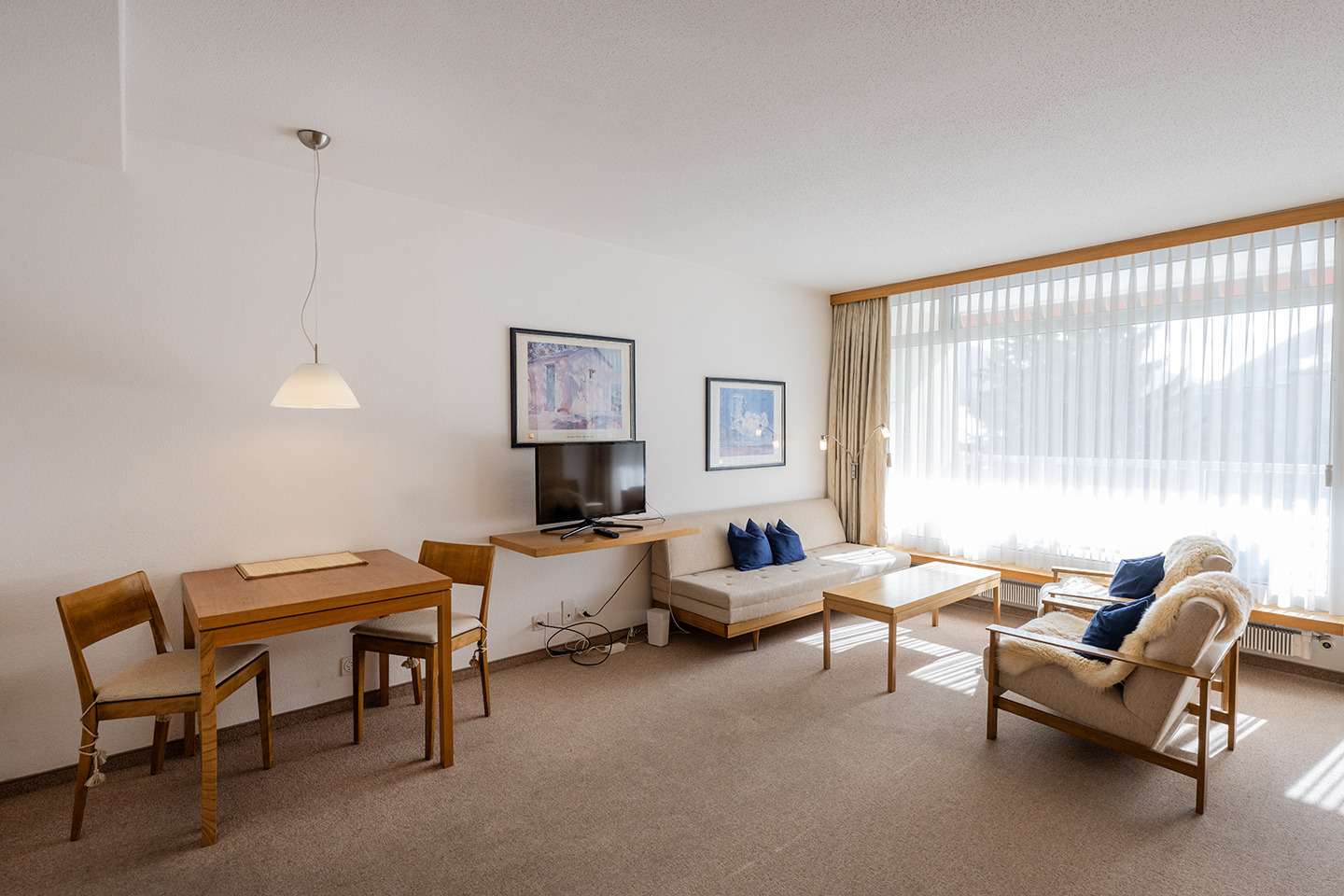 Wohn-, Schlafraum mit Polstergruppe, Essecke, 2 Klappbetten (90 x 190), TV, W-LAN.
