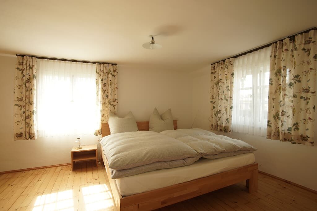 Die Wohnfläche der Ferienwohnung in der 350 Jahre alten Schmiede ist 90qm groß. Die charmante Wohnung liegt im ersten Stock. Das besondere an der Wohnung sind die zwei Schlafzimmer mit komfortablen Doppelbetten und separeten, neu renovierten Bädern. Die beiden Badezimmer sind mit geräumigen, ebenerdigen Duschen und Toilette ausgestattet. Die Küche verfügt über alles Erfoderliche und ist im Retro-Stil eingerichtet. Zudem ist die Küche mit einer Essecke eingerichtet. Im Treppenbereich finden Sie eine gemütliche Leseecke mit zwei Sesseln. Ein Highlight der Alten Schmiede ist die historische Kellerbar. In der unsere Gäste gerne stilvoll einen Drink oder eine Zigarre genießen können. Die alte Schmiede wurde XXXXXX liebevoll restauriert und mit der Denkmalschutzmedaille 2019 des Freistaates Bayern ausgezeichnet.
