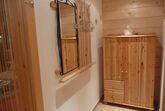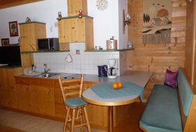 Gemütliches Appartement in Holzblockweise bestehend aus Wohnküche, Schlafzimmer, Bad und großem Balkon. Komplette Ausstattung (Kochen, Essen, Schlafen), SAT-TV, WLAN und liebevolle Einrichtung.