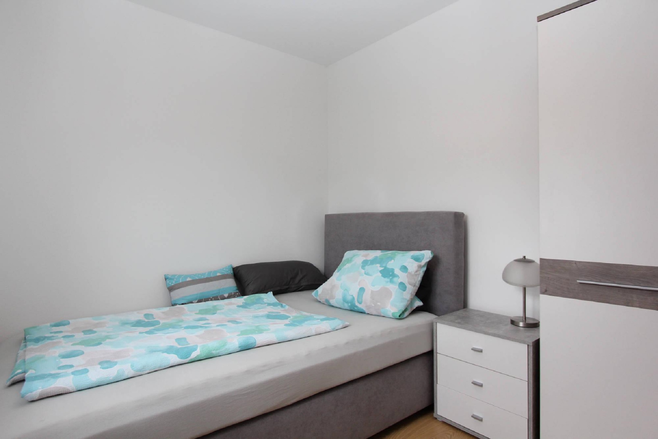 Ferienwohnung für 2-3 Persen, 86 qm, zwei Schlafzimmer, eigener Eingang,Separate Küche mit Essplatz, 4-Platten-Ceranfeld, Backofen, Spülmaschine Kaffeemaschine,Wasserkocher.Wohnzimmer mit Couch, geräumiger Essecke und Zugang zur Terrasse mit Gartenanteil.Bad mit Dusche und Badewanne, separates WC, WLAN, kostenloser Parkplatz