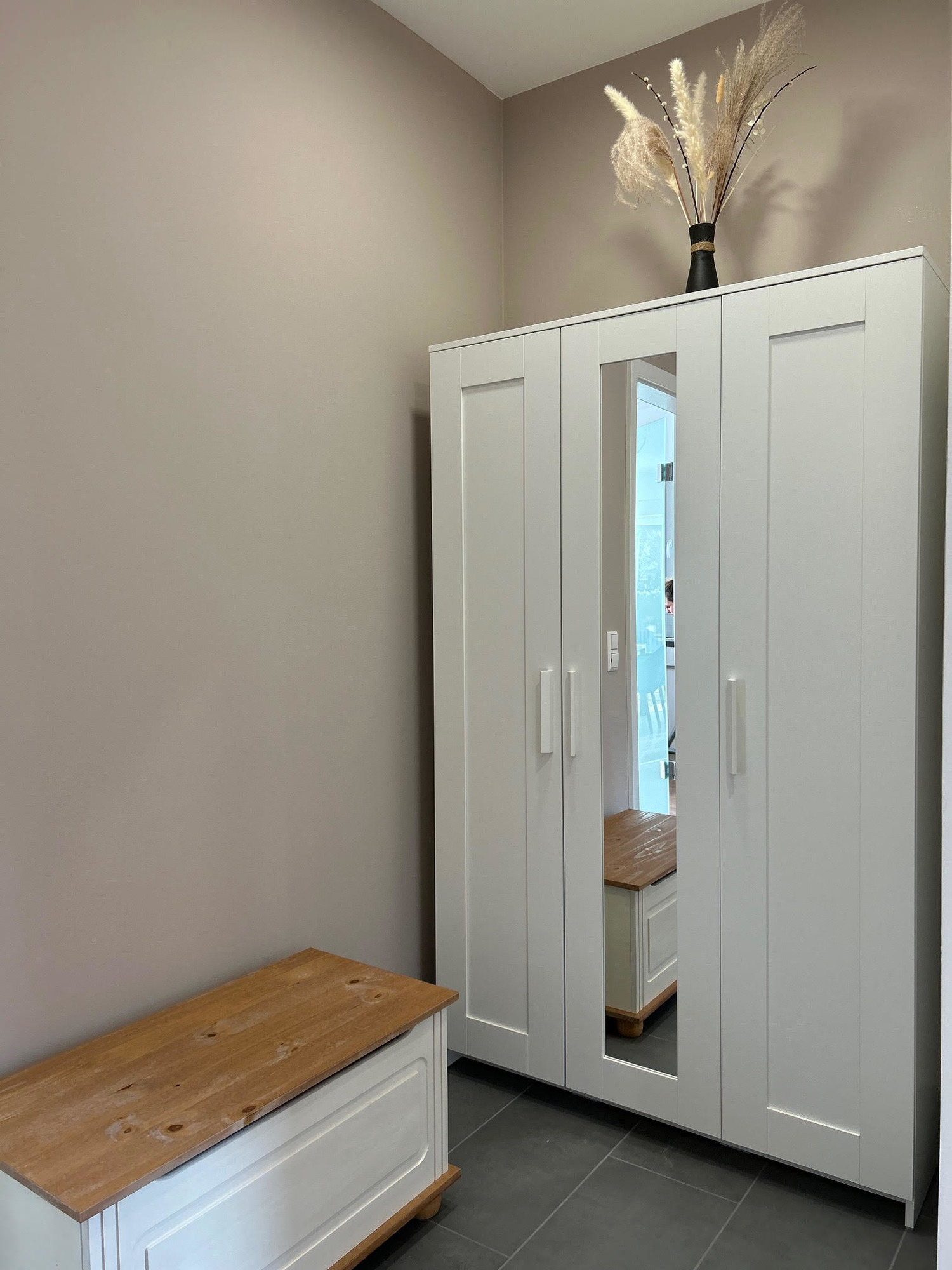 Zwei kostenlose Parkplätze direkt vor dem Haus sorgen für eine stressfreie Anreise. Zusätzlich steht ein Gartenhaus für Ihre Fahrräder bereit, während der Garten und die Terrasse zum Verweilen unter freiem Himmel einladen.