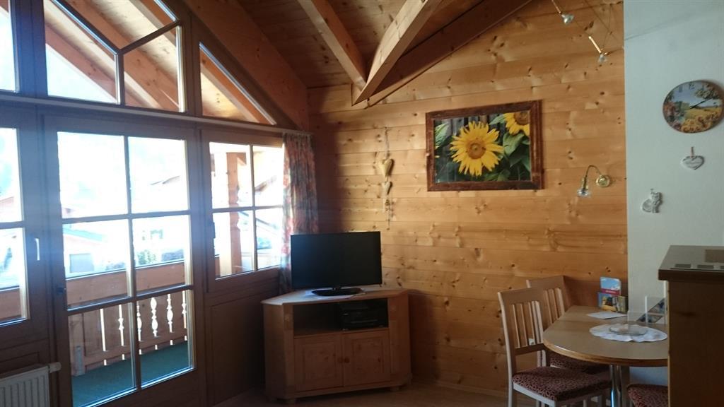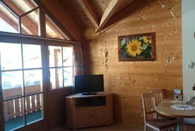 Gemütliches Appartement in Holzblockweise bestehend aus Wohnküche, Schlafzimmer, Bad und Balkon. Sonnige Aussicht in die Berge im Osten. Komplette Ausstattung und liebevolle Einrichtung. Großer SAT-TV und kostenloses WLAN