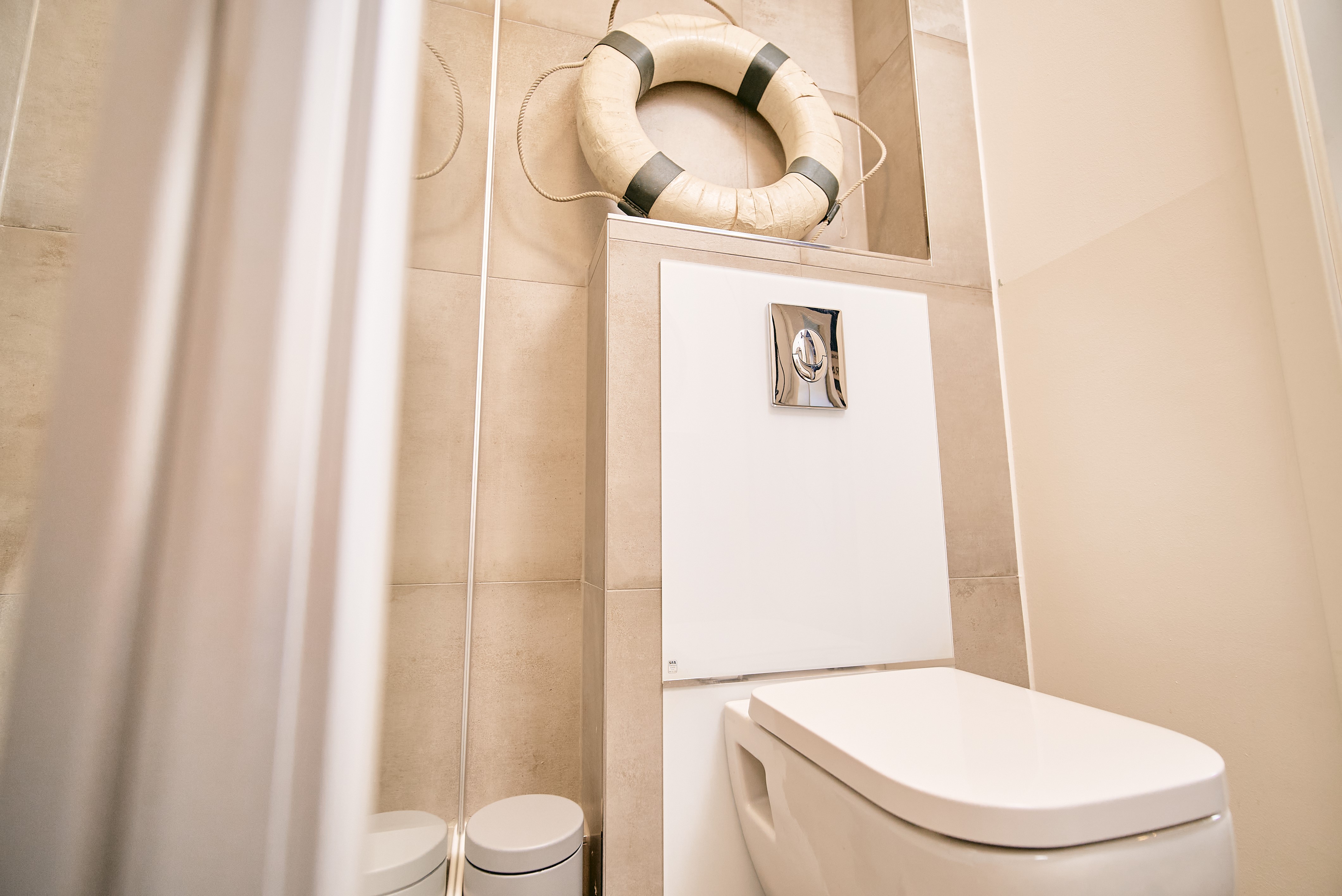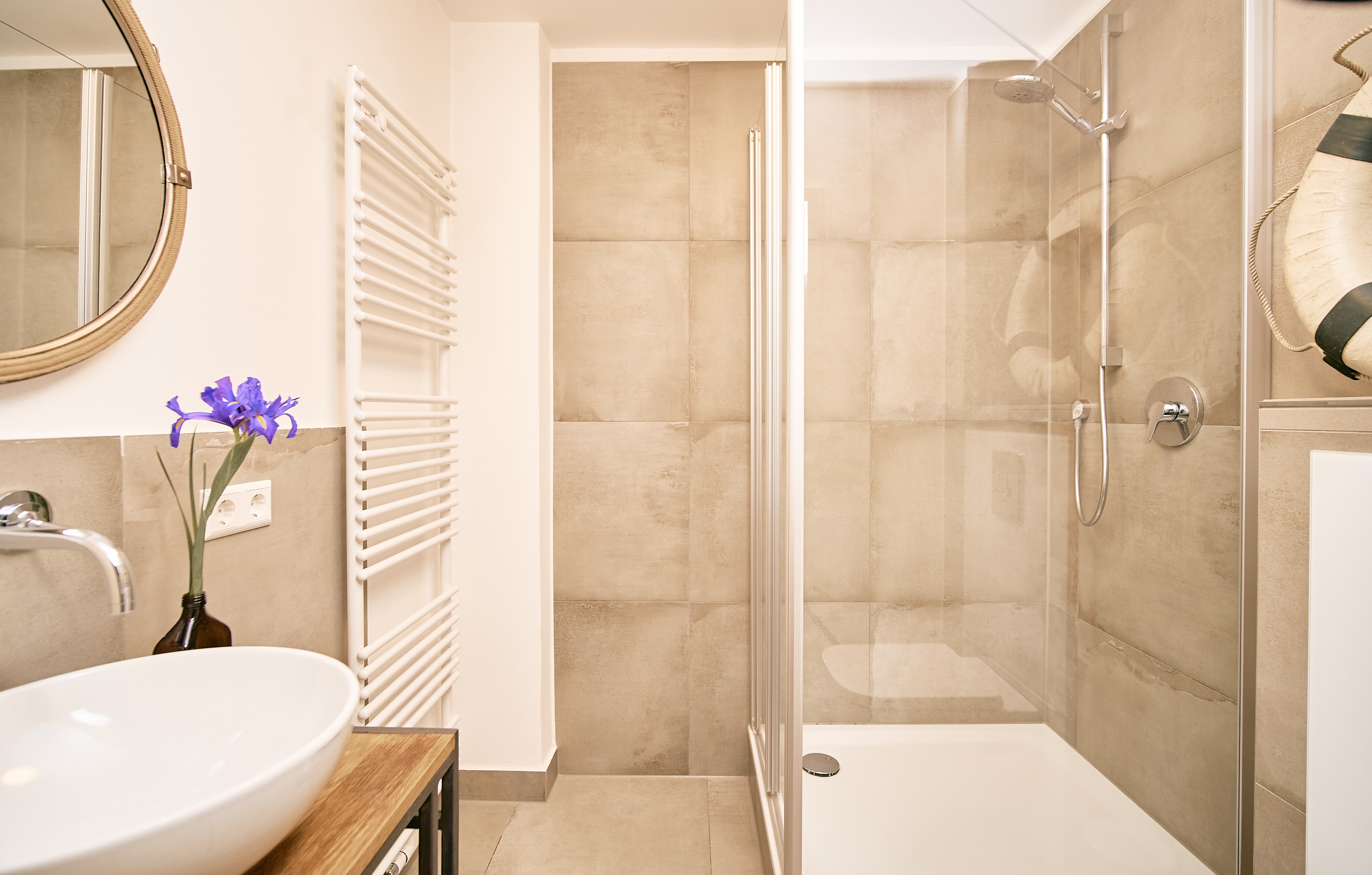 · 1 Badezimmer mit Dusche, Toilette, Waschbecken
