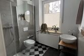 · 1 Badezimmer mit Dusche, Toilette, Waschbecken