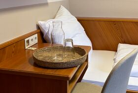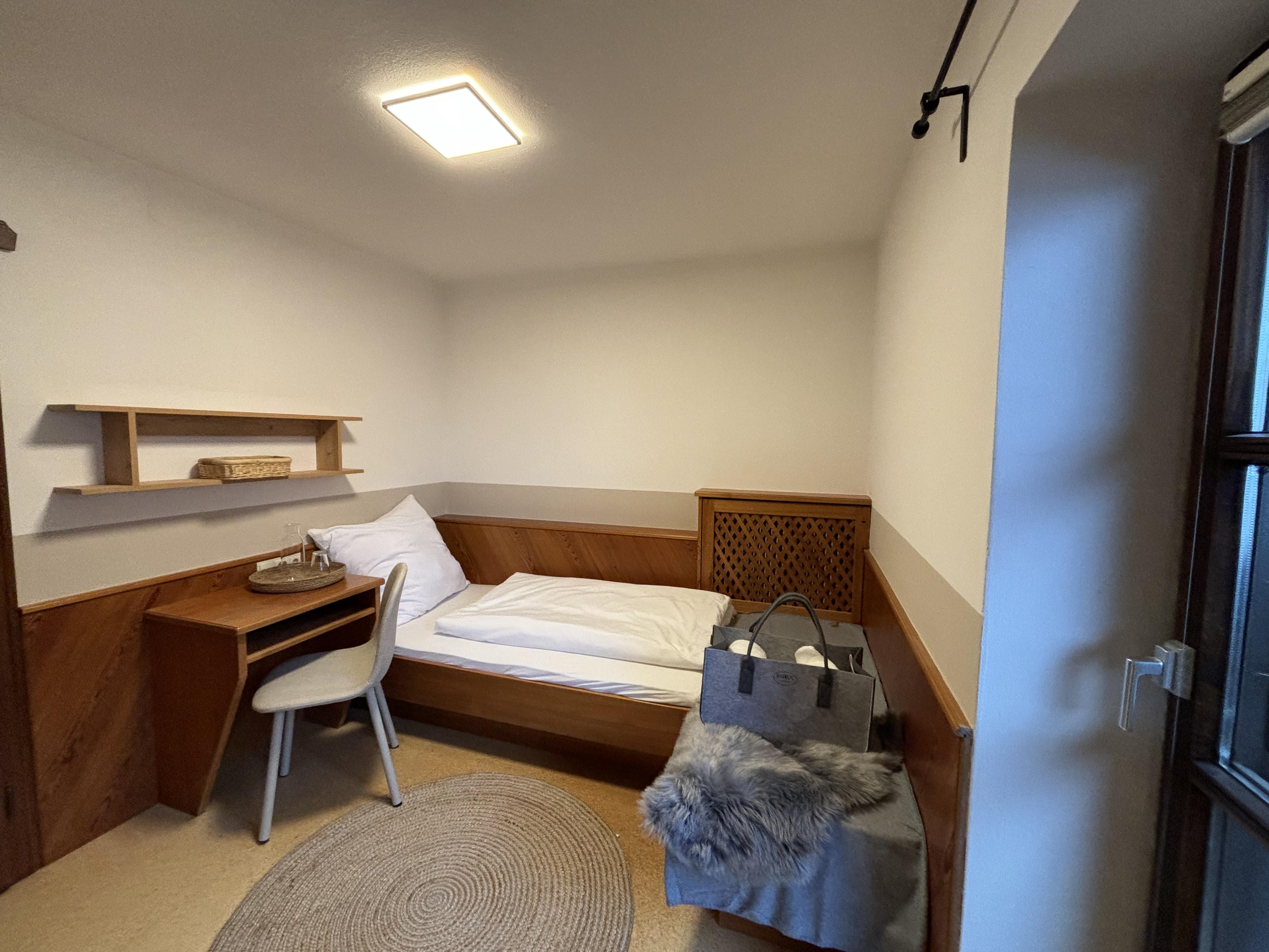 Dieses gemütliche etwas kleinere Einzelbettzimmer verfügt über einen Balkon.