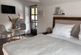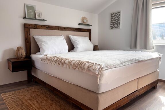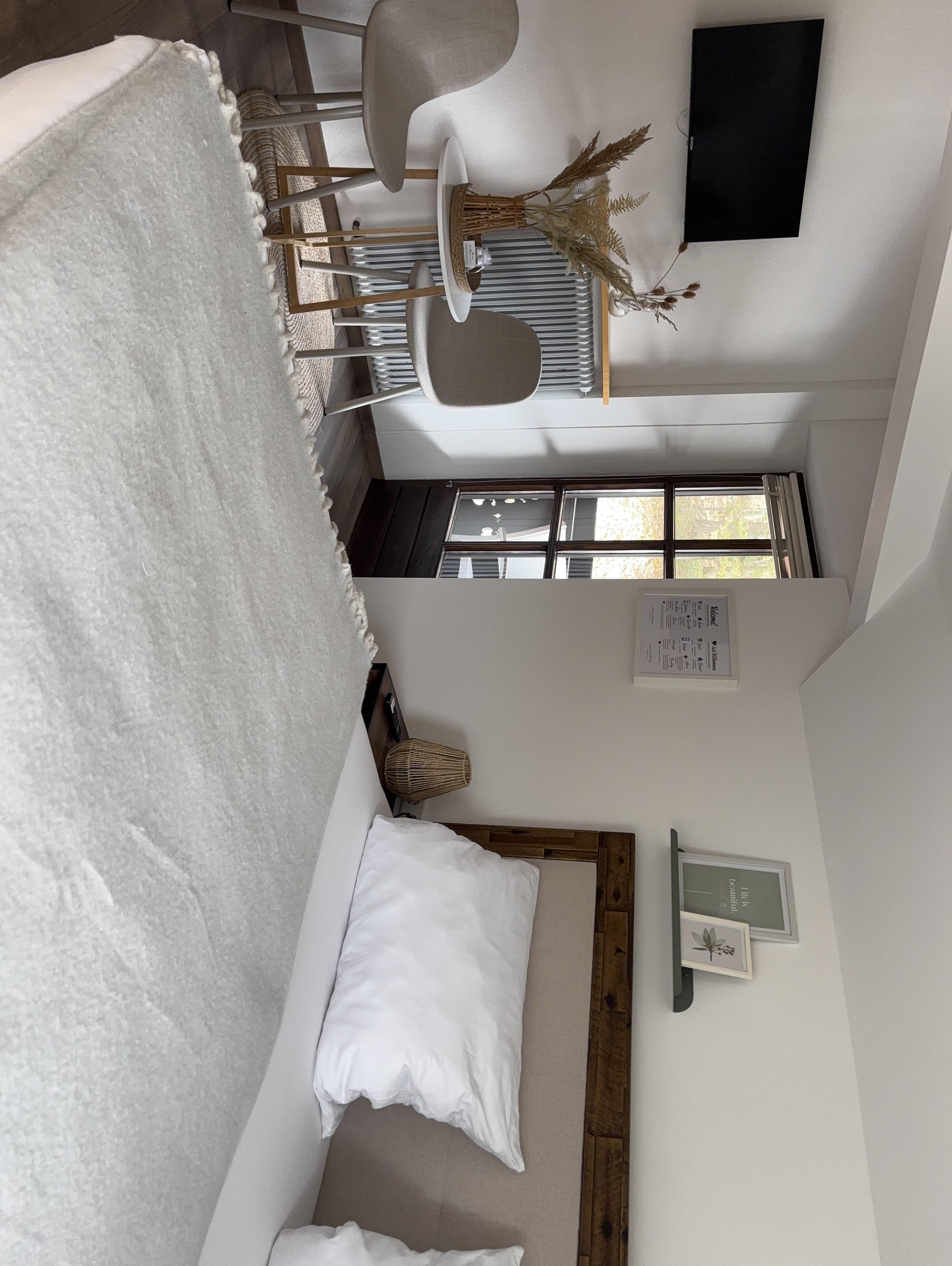 Dieses gemütliche sehr helle Doppelbettzimmer verfügt über einen Balkon und ein Fenster.