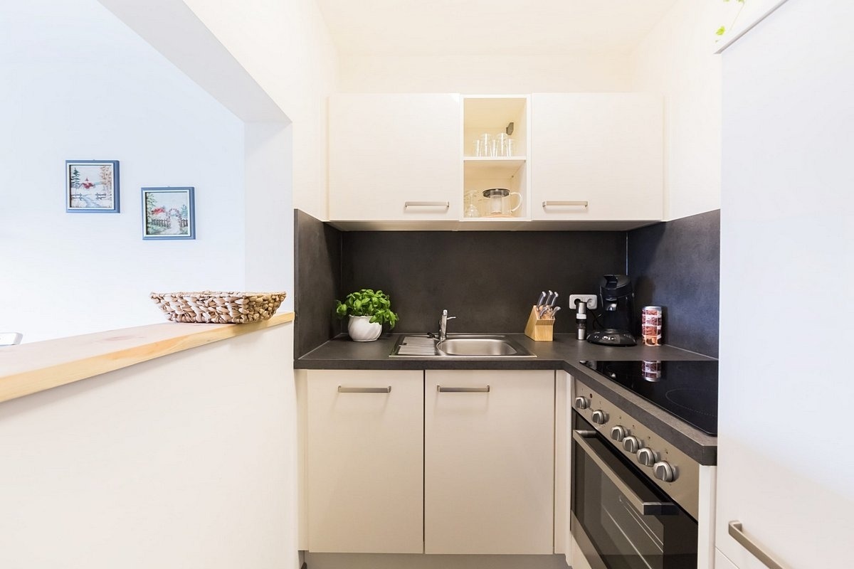 • Kaffee-Maschine, Wasserkocher, Backofen, separate Küche