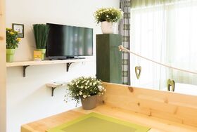 Die Mini Lodge ist die Ferienwohnung für Minimalisten. Für ein bis zwei Personen ist diese Lodge ein super Ausgangspunkt in Ihr Urlaubsabenteuer. Wildgrüne Zirbenholzelemente, das hochwertige Box-Spring-Bett, die moderne Küche und natürlich alpenländische Dekoration sorgen für ein tolles Wohnklima.