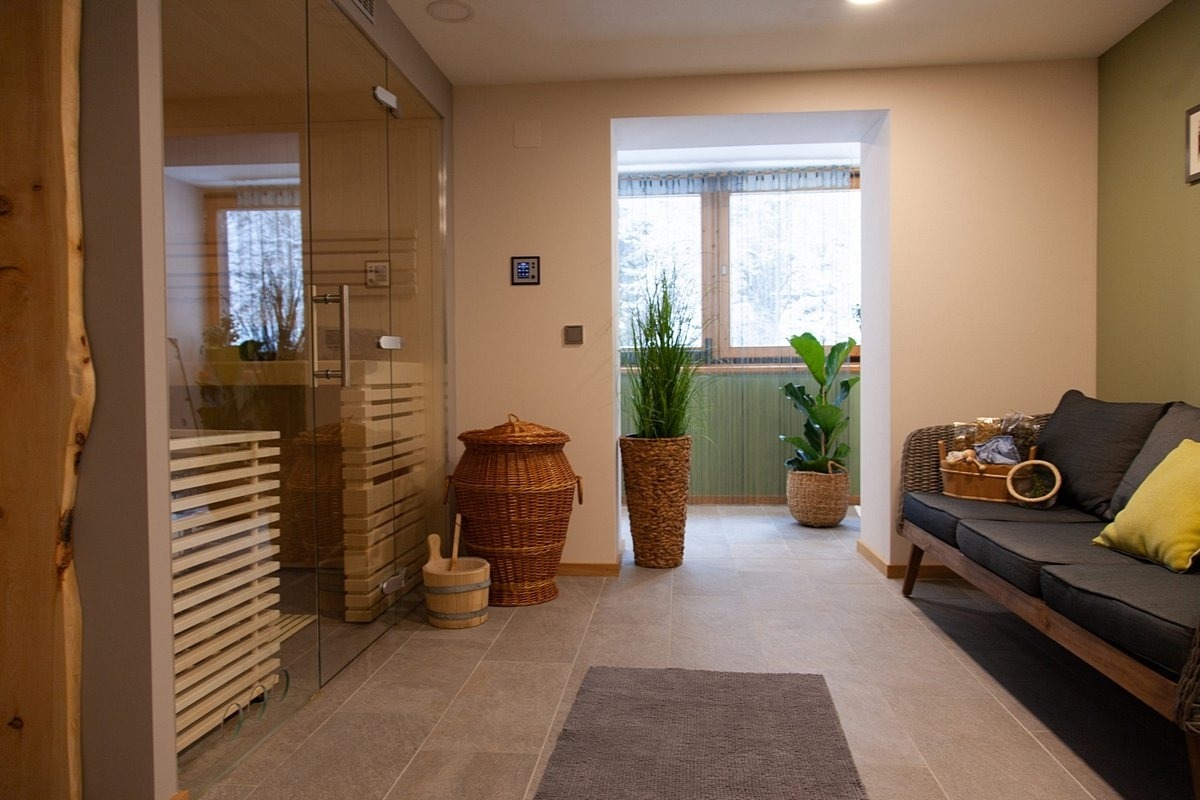 Genießen Sie puren Luxus und völlige Freiheit in unserer Wildgrün Suite. Eine private Sauna und der Whirlpool laden zu entspannten Momenten ein.