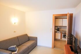 Subretta, 2-Zimmer-Wohnung 40 m2, unteres Geschoss. Hell, zweckmässig eingerichtet: Wohn-/Schlafzimmer mit 1 Doppeldiwanbett, Esstisch, Sat-TV und Radio. 1 Zimmer mit 1 Doppelbett. Offene Küche (Backofen, Geschirrspüler, 4 Glaskeramikplatten, Wasserkocher, elektrische Kaffeemaschine). Dusche/WC. Heizung. Teppichboden. Terrasse. Panoramasicht. Zur Verfügung: Kinderhochstuhl, Babybett. Internet (Wireless LAN, gratis). Bitte beachten: Nichtraucher-Unterkunft. Rauchmelder, Feuerlöscher.