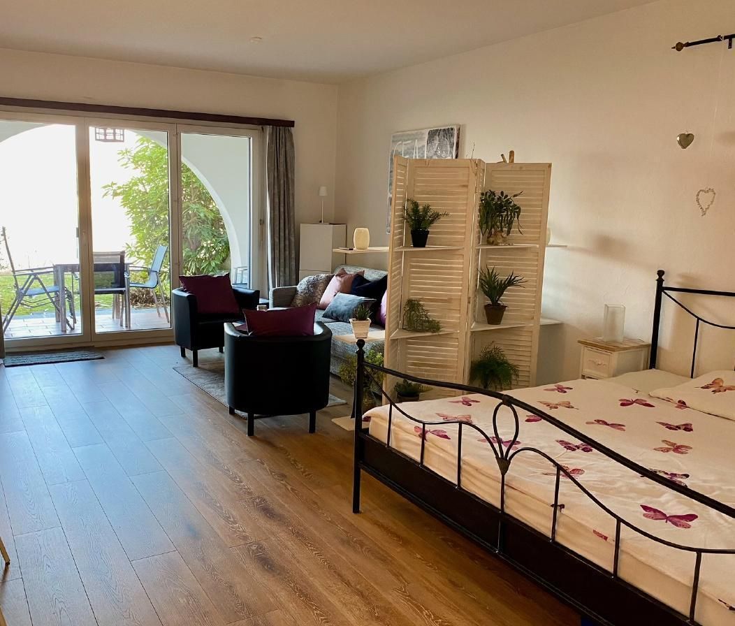 Die moderne 1-Zimmer Parterrewohnung mit eigenem Garten befindet sich im untersten Haus der Residenza Viramonte, in ruhiger Lage und bietet Platz für 2-3 Personen. Ihr Hund ist ebenfalls herzlich willkommen!