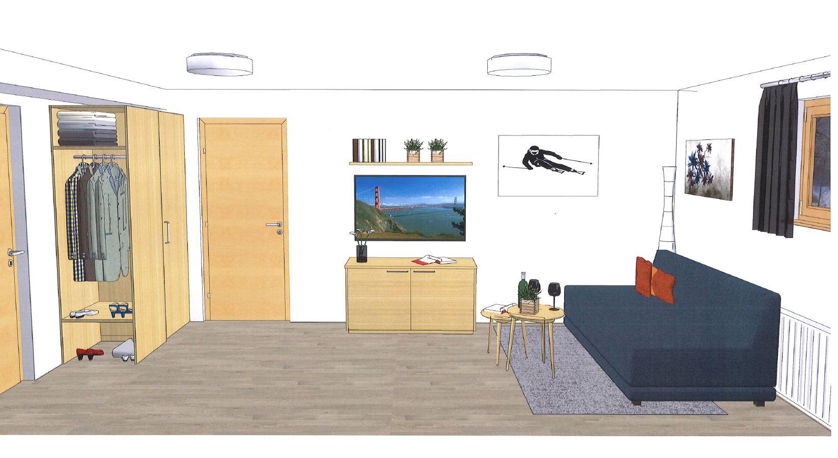 Ferienwohnung im Untergeschoss mit allen Annehmlichkeiten sowie modernsten Design ausgestattet. Neben einer Designercouch von Ligne Roset erwarten Sie ein modernes Design. Die Stille und der Ausblick erfüllen alle Urlaubsansprüche.