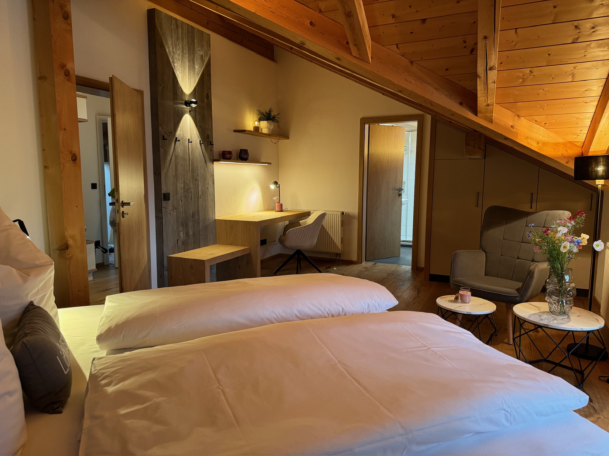 Die Schlafzimmer sind komfortabel und bieten eine erholsame Nachtruhe nach einem aktiven Tag in den Bergen. Moderne Badezimmer sorgen für zusätzlichen Komfort und Bequemlichkeit.