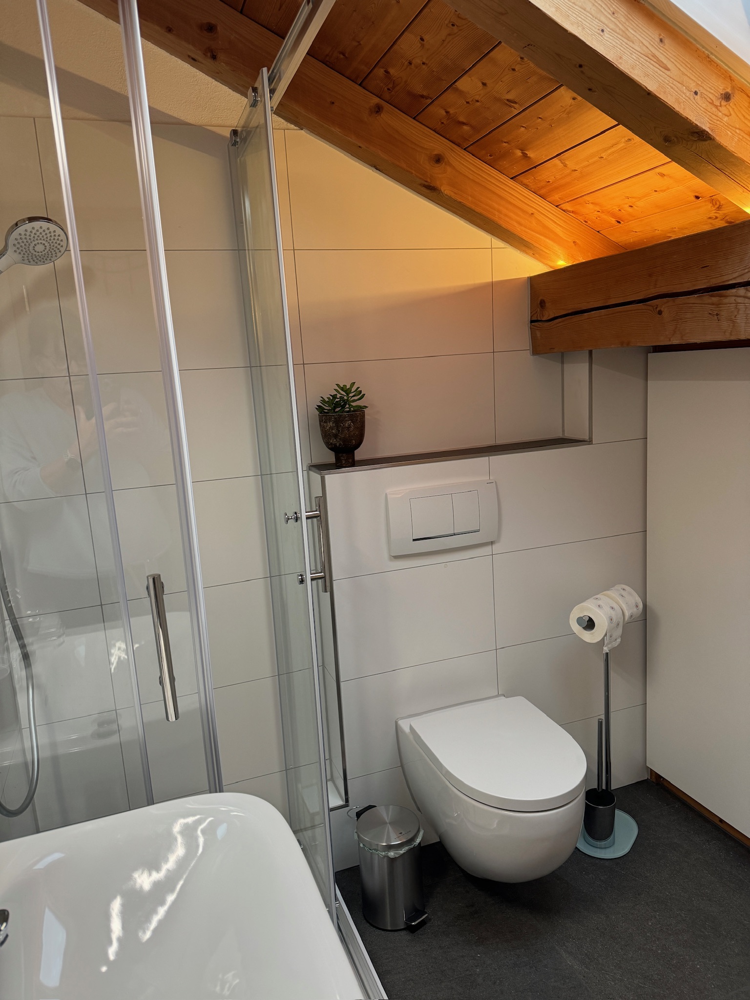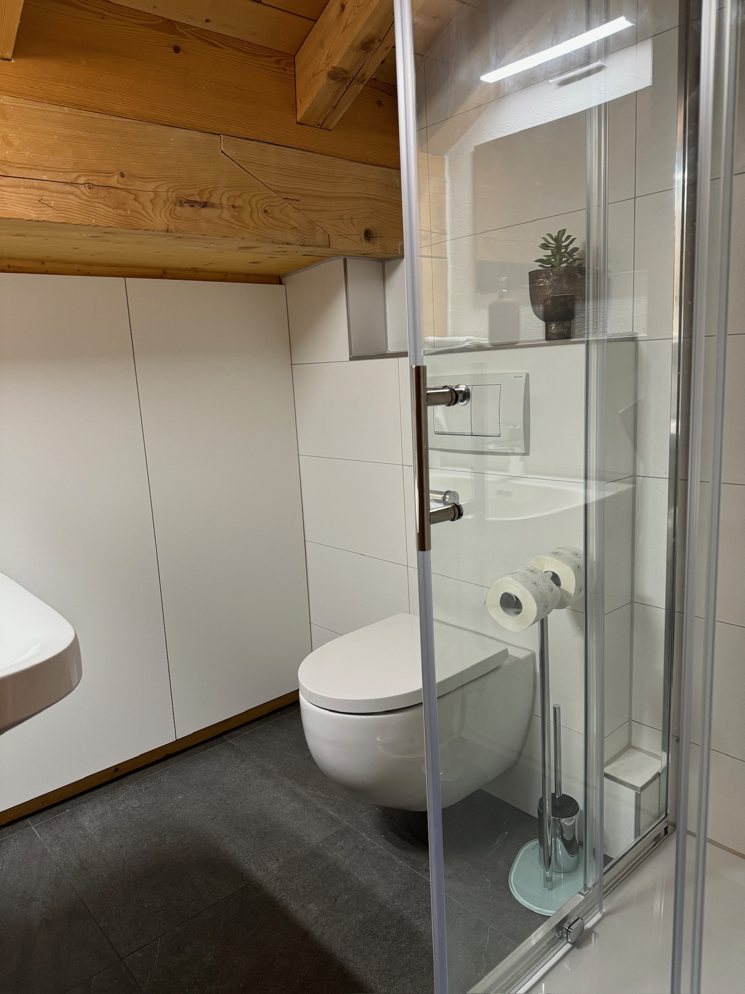 Nach einem ereignisreichen Tag in der Natur können Sie sich in den komfortablen Schlafzimmern des Haus Kreiznegge entspannen und eine erholsame Nachtruhe genießen. Moderne Badezimmer sorgen für zusätzlichen Komfort und Bequemlichkeit während Ihres Aufenthalts.