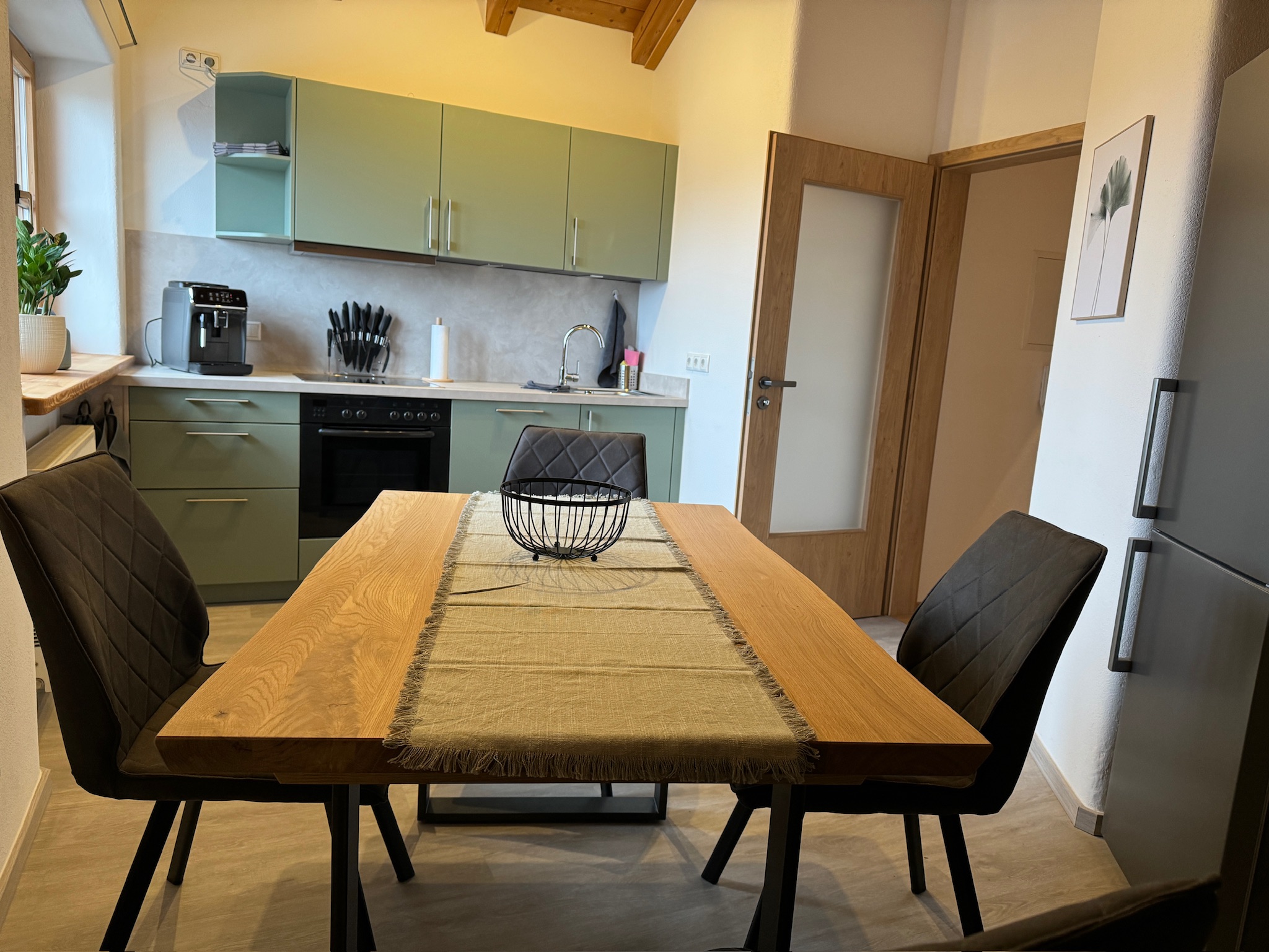 Die Küche ist voll ausgestattet und bietet alles, was man für die Zubereitung köstlicher Mahlzeiten benötigt. Ein geräumiges Wohnzimmer lädt zum Entspannen ein, mit Zugang zu einem Balkon, um die frische Bergluft zu genießen.