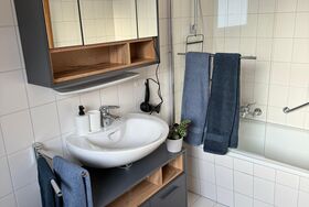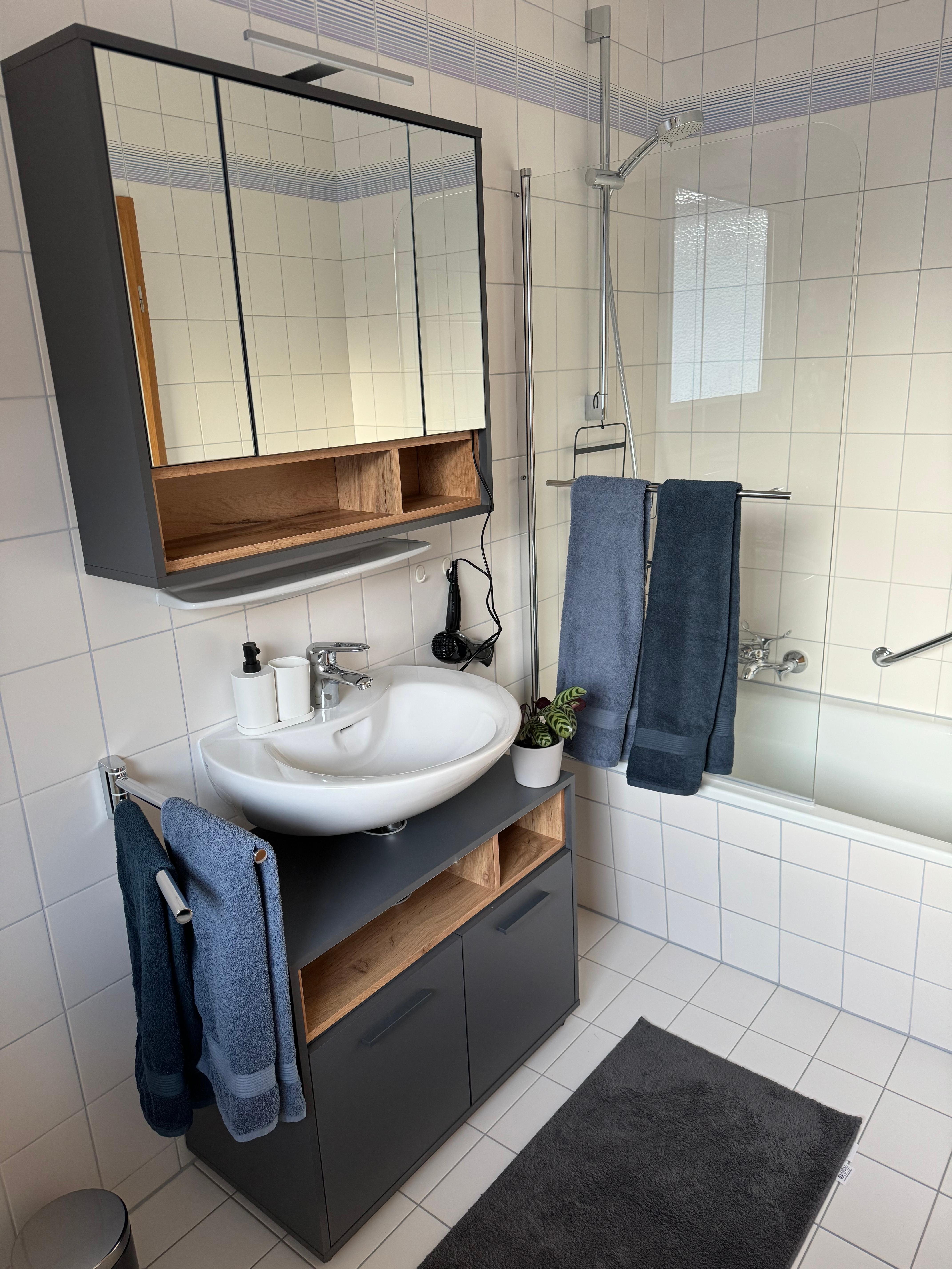 Das große Bad verfügt über eine Dusch-Wanne, Handtücher sind inbegriffen.
