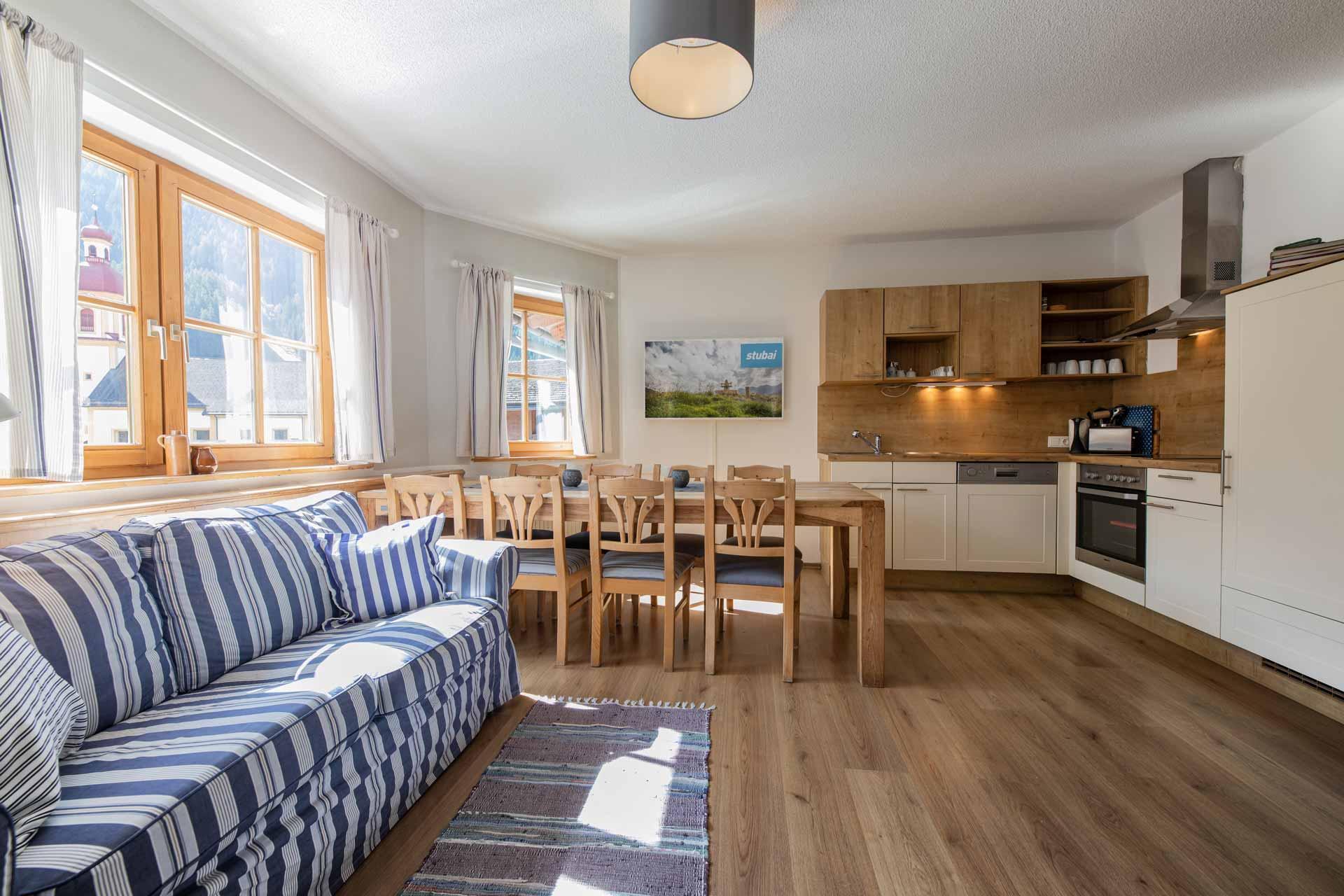 Nach einem ereignisreichen Ski- oder Wandertag in den Stubaier Alpen können Sie den Abend zusammen mit Ihren Freunden bei einem gemütlichen Abendessen in unserer liebevoll eingerichteten Wohnküche ausklingen lassen.