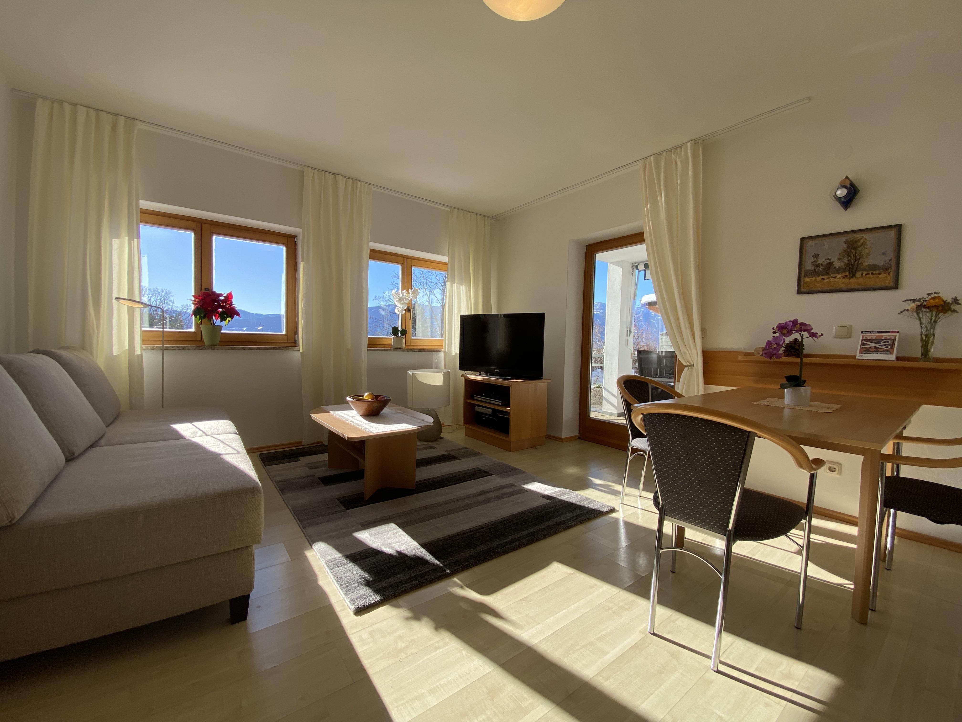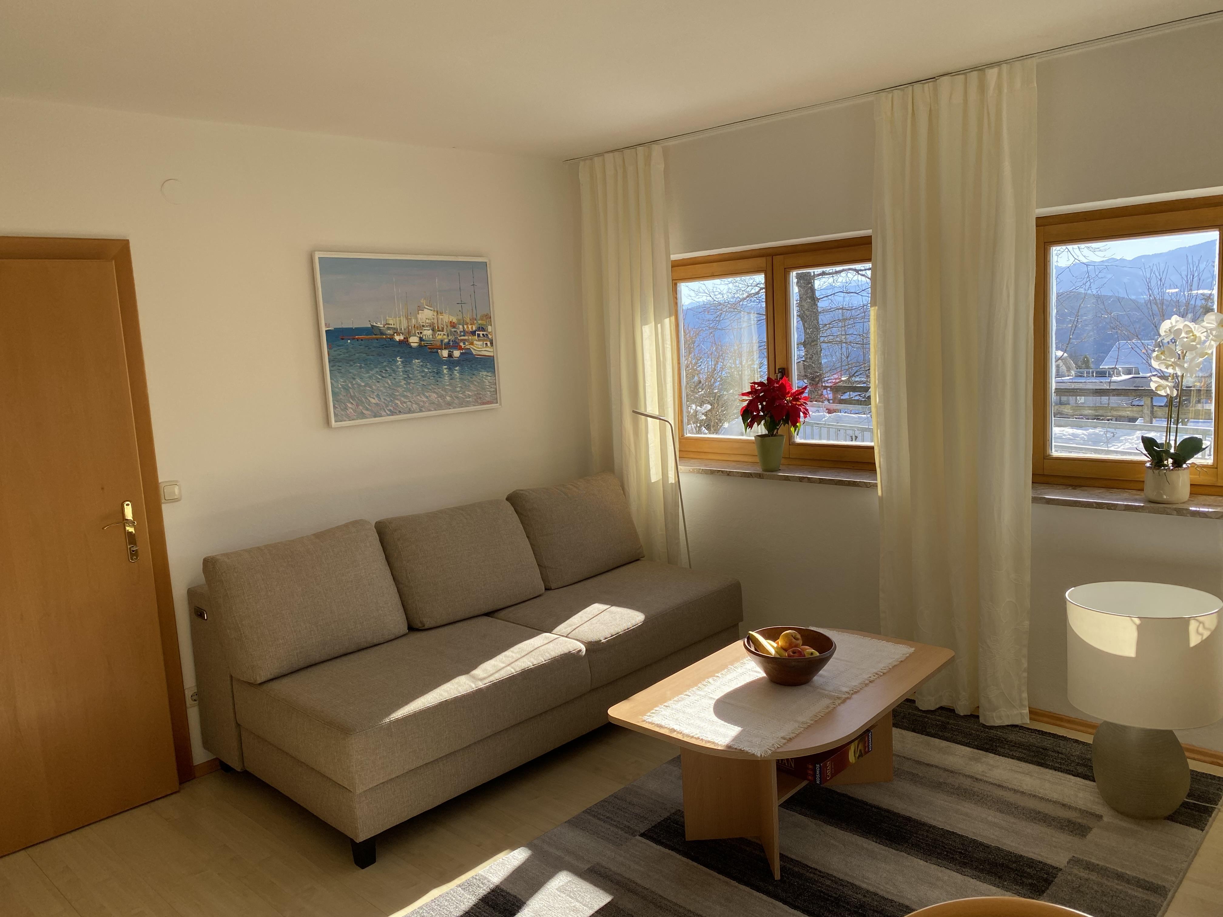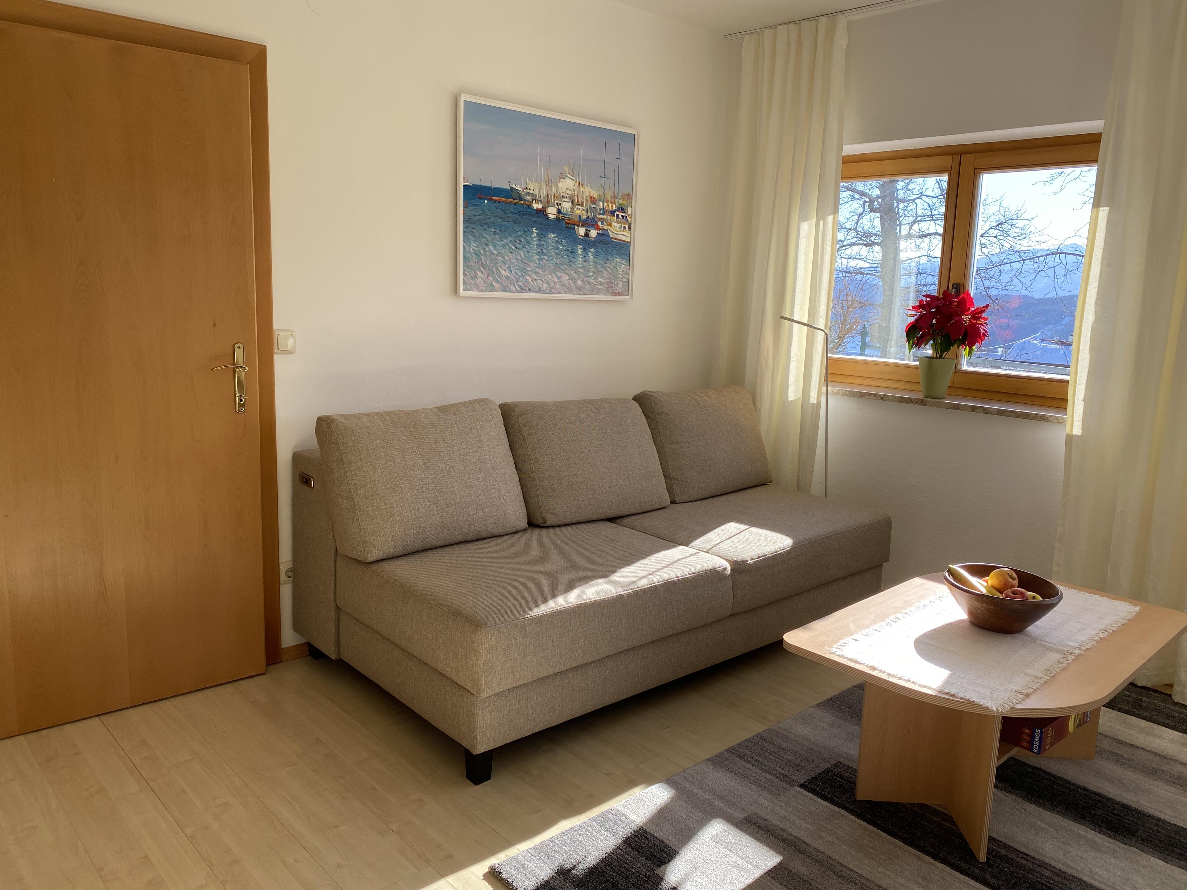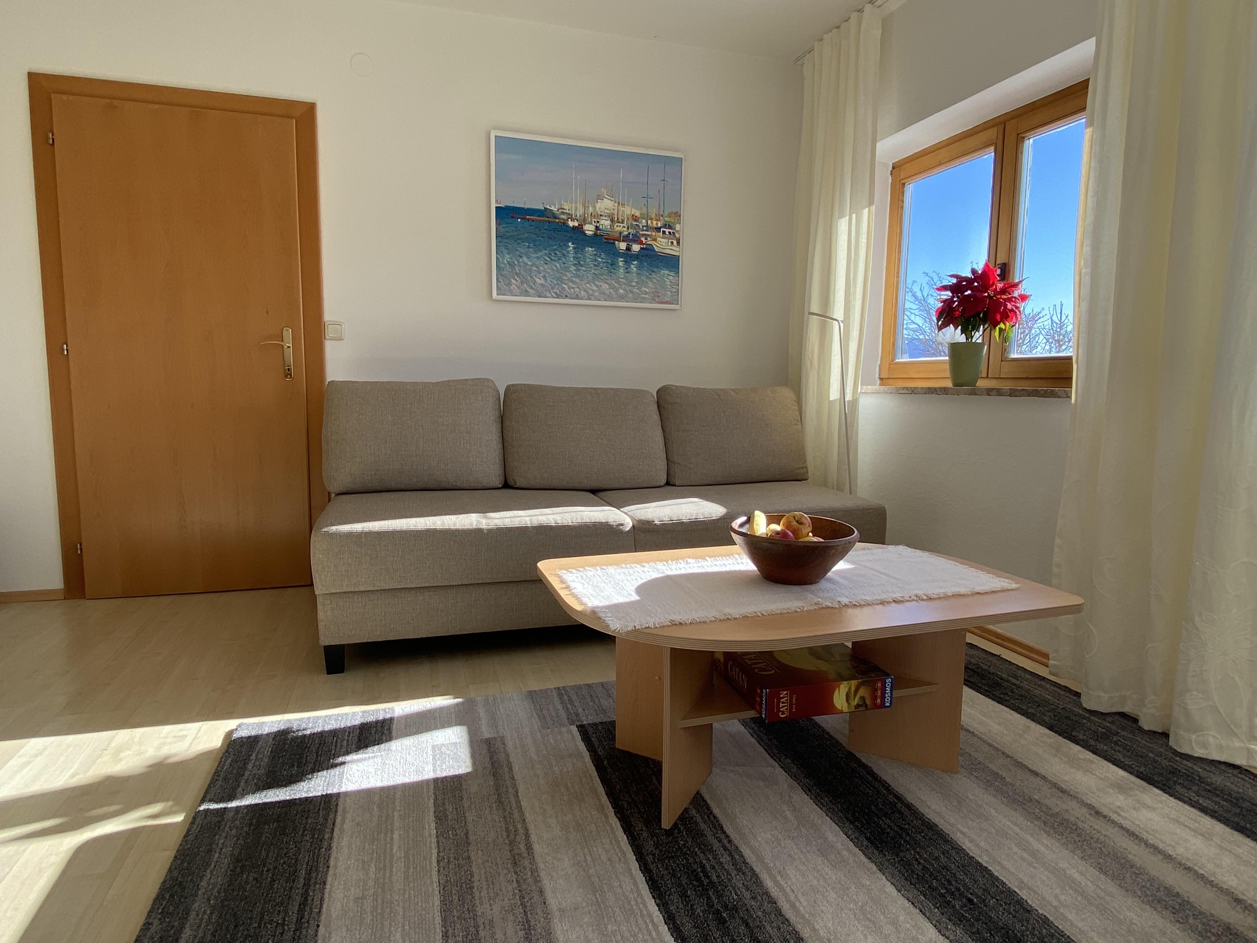• Wohnzimmer mit neuem 4-Sitzer Sofa, bei Bedarf als Schlafsofa nutzbar